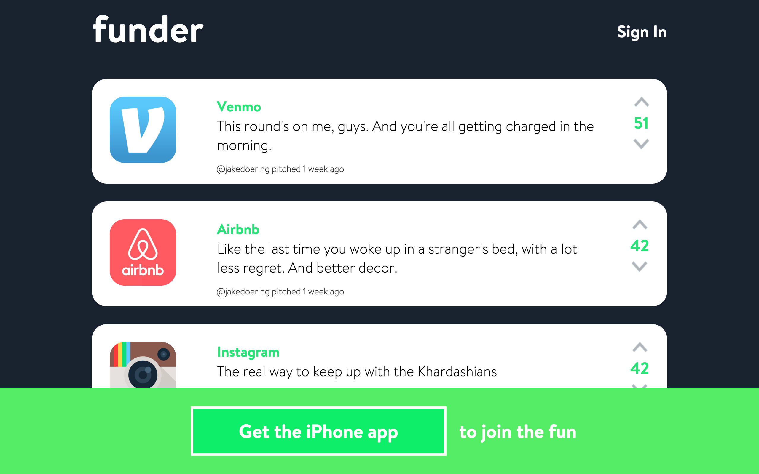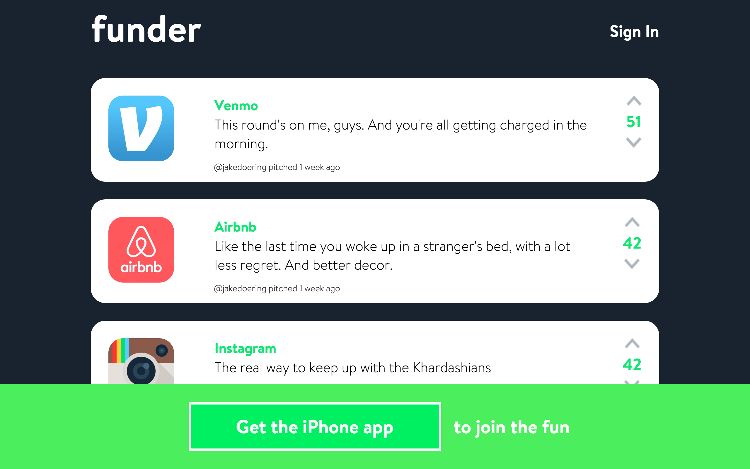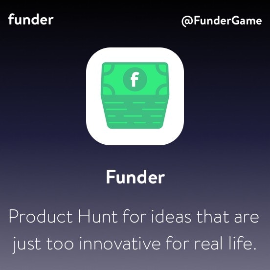 I'm excited to be revealing Funder. We describe it as "Startups are silly. Let's make fun of them." and I think you'll love it.