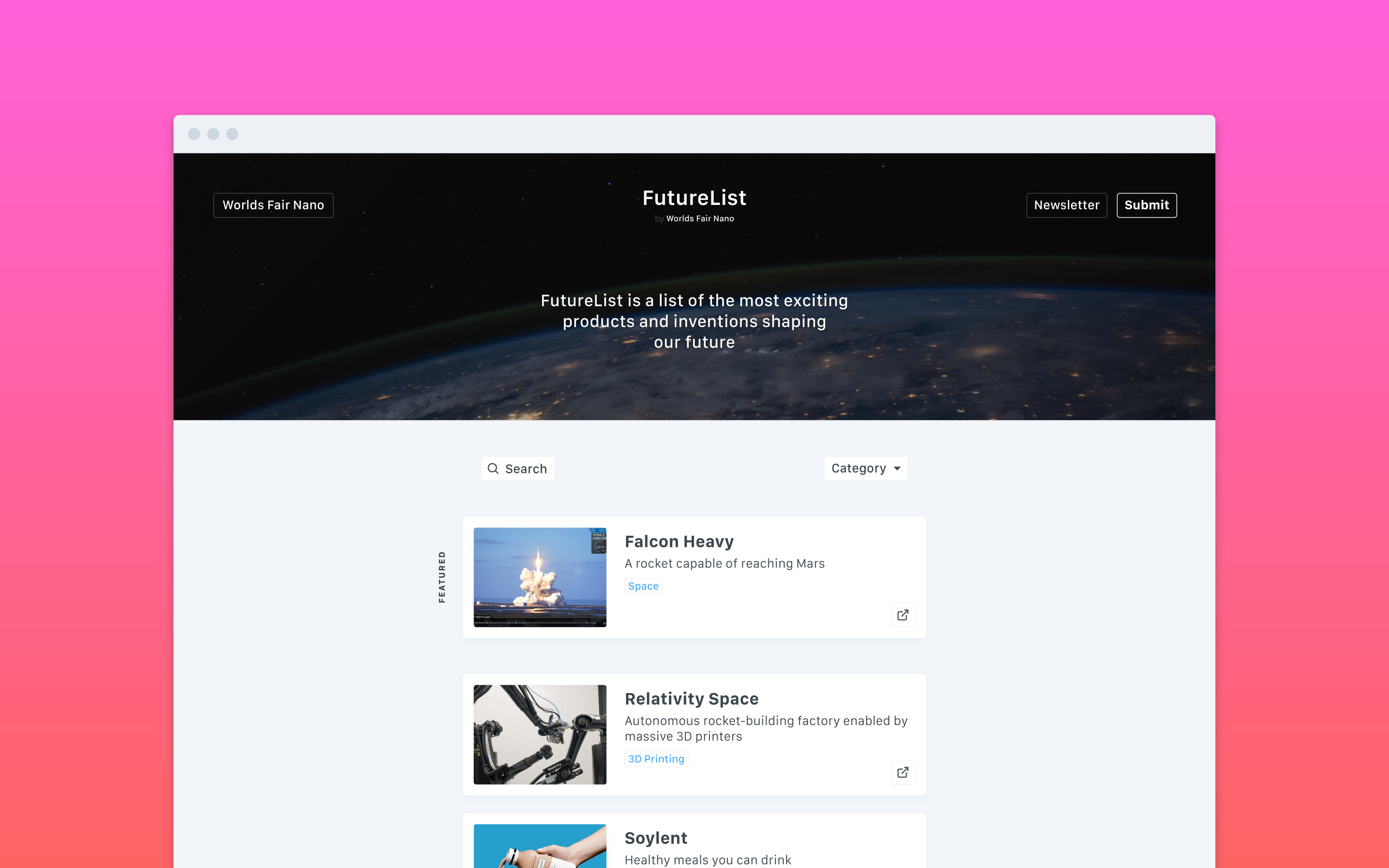 Keeping track of all these futures is an arguably impossible task for any one person or centralized group. By leveraging submissions of the future from anyone, FutureList might be able to keep up with the breakneck pace of creation.