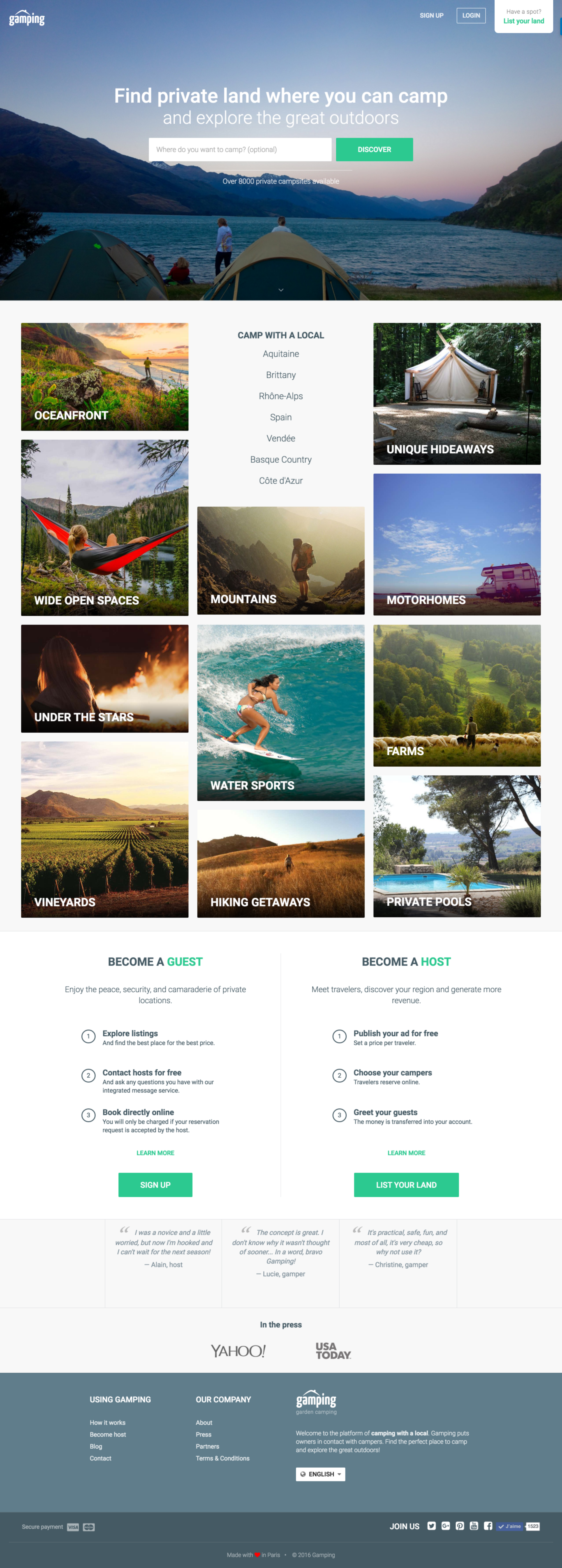 Gamping is a simple way to find gardens for camping in 18 countries!