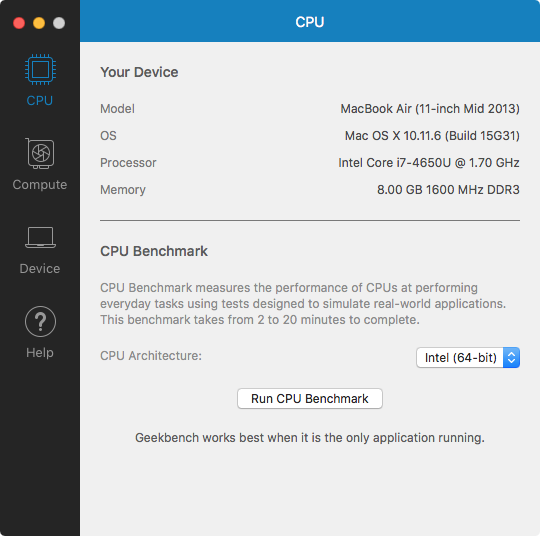 Geekbench is the standard in simple benchmarking of computers, particularly Macs and PCs. Geekbench is nearly always used to run comparisons against the latest Macs.