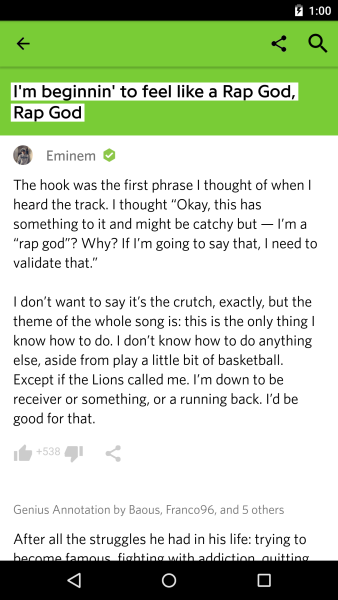 Thanks @eriktorenberg! We’re psyched to finally launch our Android app, one of our all-time most anticipated features, and to roll out our redesign across our apps and homepage. Whether on mobile or the web, we want to make it easier than ever for users across the world to explore annotated lyrics and other texts and to contribute to the Genius knowledge pro… See more