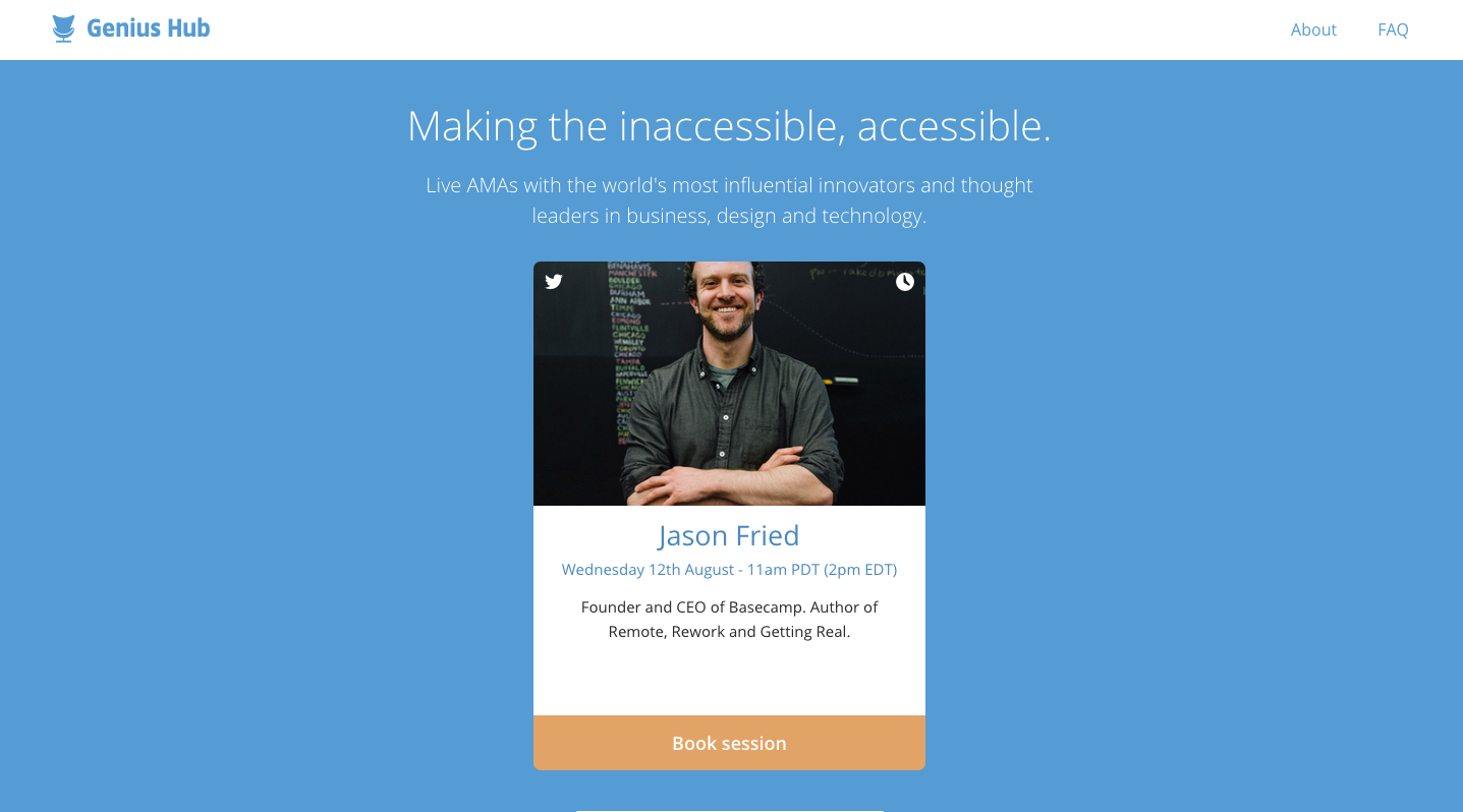 We wanted to improve the AMA experience. So we created Genius Hub, a chat app specifically for that. It's a place where you can chat directly with innovators and thought leaders. First AMA is with @jasonfried.