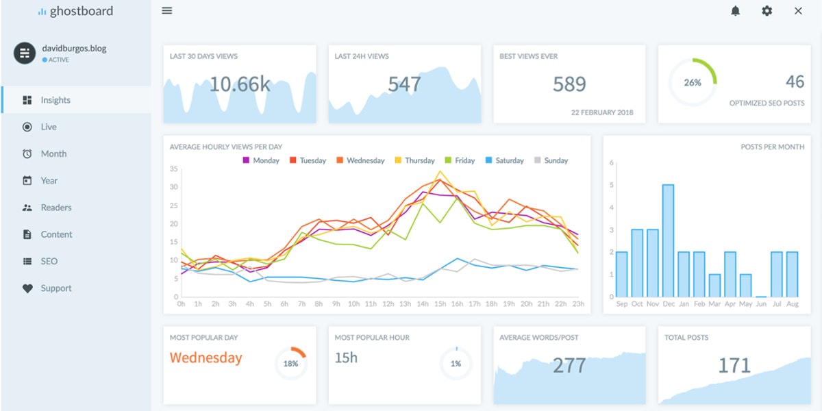 This is one of the biggest things I've felt like Ghost was missing. Always had to rely on a separate google analytics tab. Good stuff!