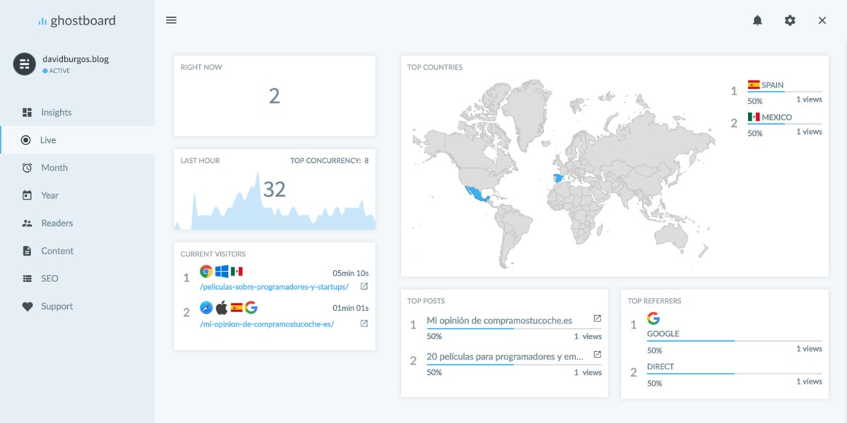 Ghostboard is the Analytics specially built for Ghost blogs:
