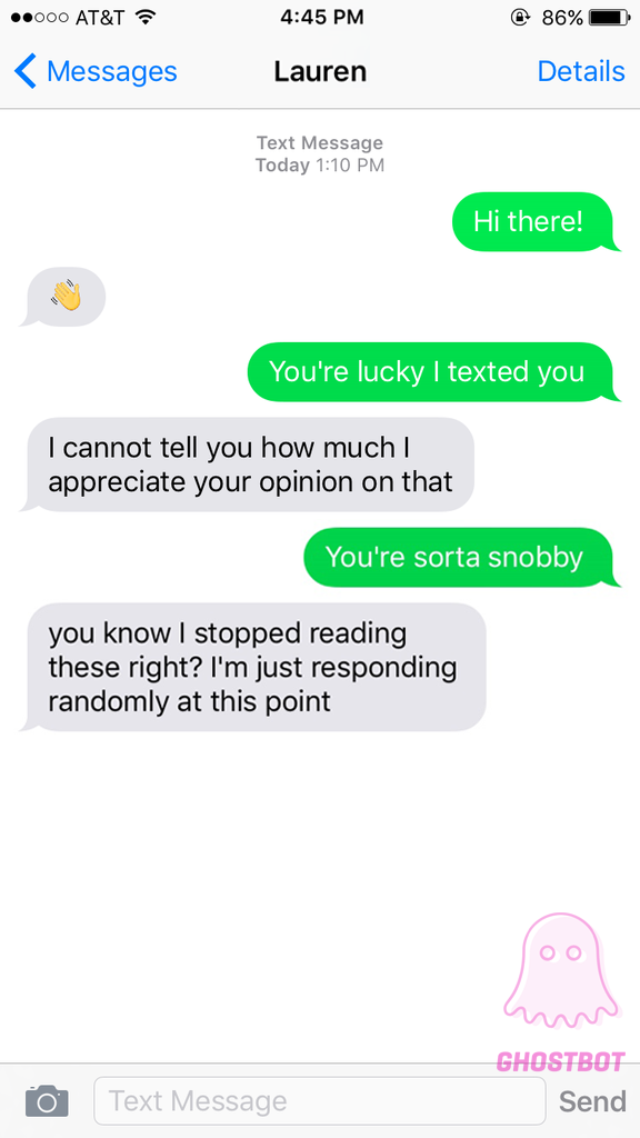 "Ghostbot is a fun, witty auto-responder", "Ghostbot will take over for you when you no longer want to deal with someone", "ghost away from fleeting relationships — without the emotional baggage"