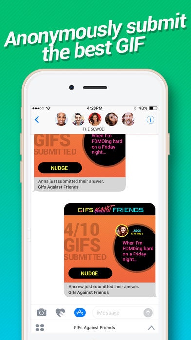 We set out to make a group party game for iMessage and are happy to announce GIFs Against Friends. Think "Cards Against Humanity" but replacing phrases with GIFs.