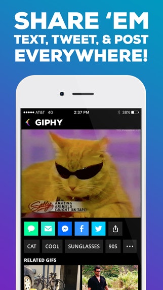 Previously known as 'Giphy for Messenger', now Giphy's iOS application (thankfully!) let's you copy and share gifs in multiple applications.