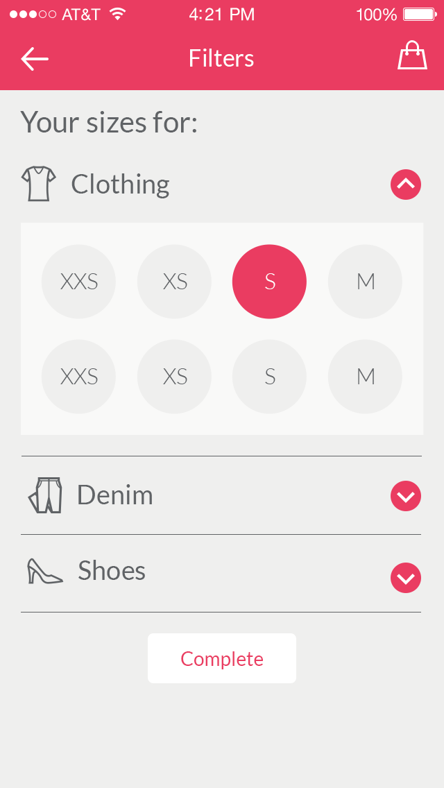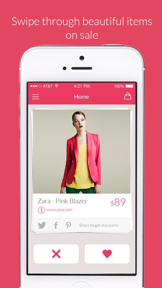 Tinder meets fashion haha! I love the UI. I've already found a few items I would consider purchasing 😄 It would be nice though if you could zoom in to get a closer look and filtering on shoes or bags always pops up a "check out trending items" dialog snd takes me to a different screen.