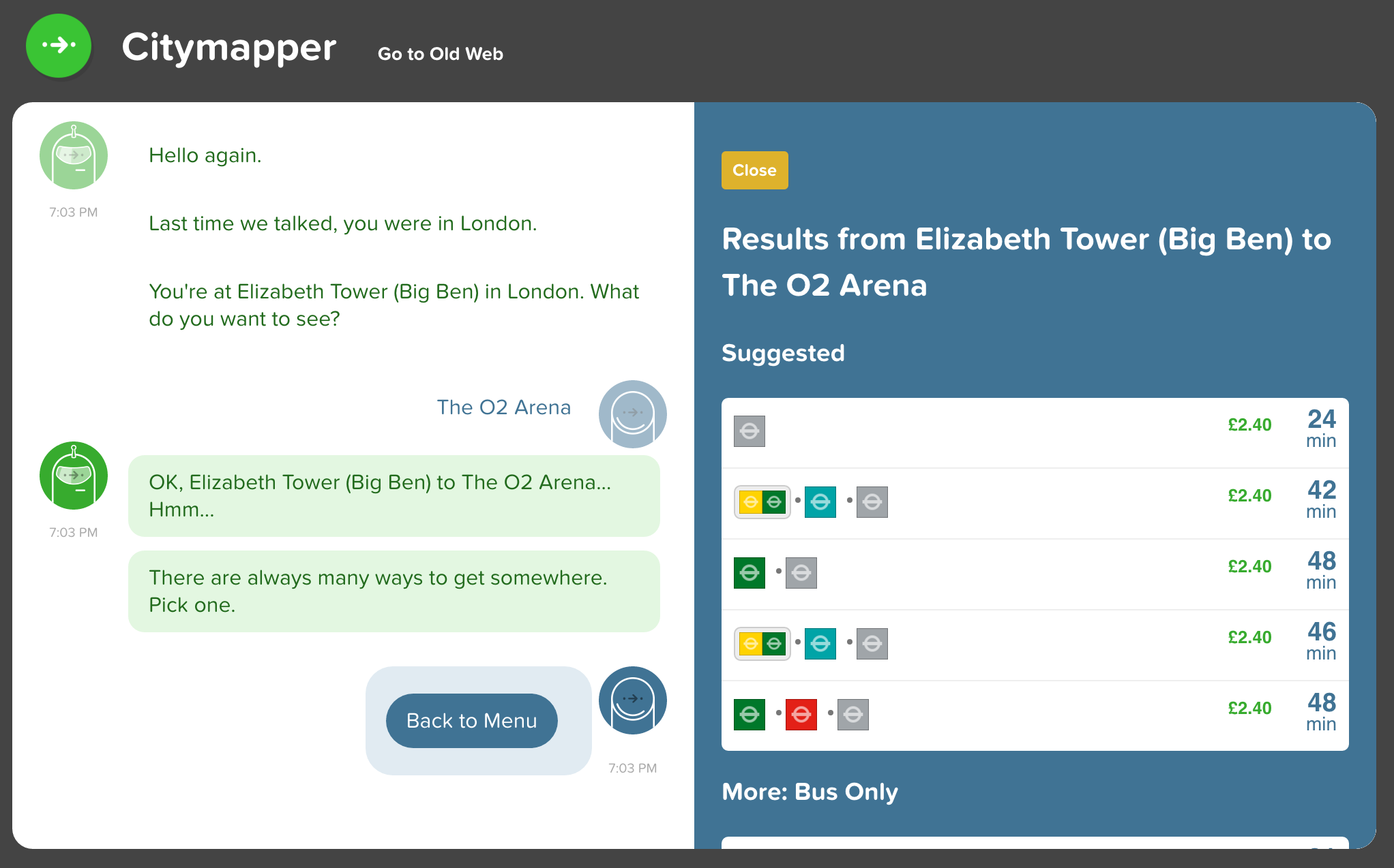 My only quibble with the app itself is I feel like I've saved a bunch of routes or commutes that are supposed to appear on my home screen, but then they only appear there sporadically, if at all. If somehow the bot could always remember precisely the same "usual" routes in the morning and at night, I'd find it helpful!