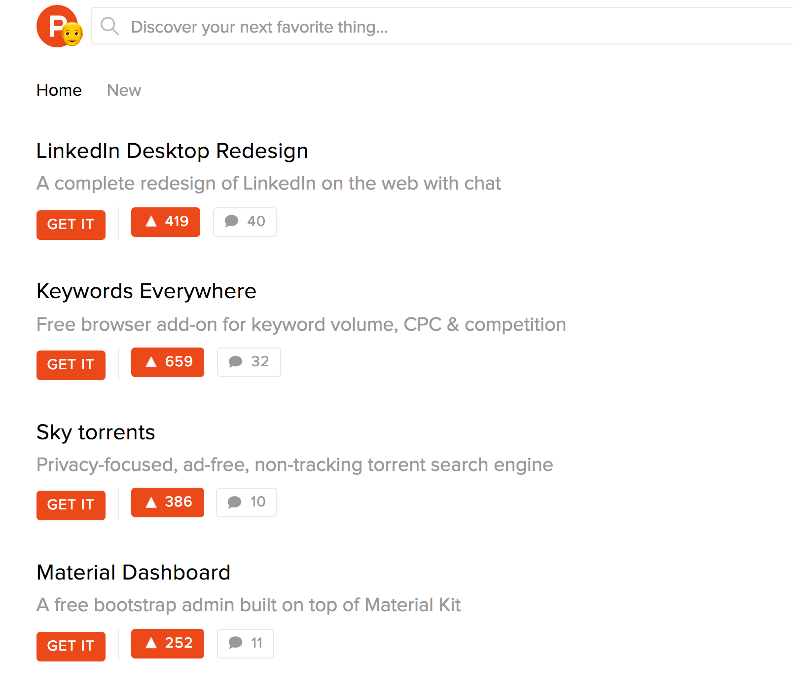 PH recently started testing a new design. personally I found it really hard to use. @tchret has saved me by updating his Good Old PH extension to make it fix the new design. See below screenshot for a comparison: left is the new default PH design; on the right is with this Good Old PH extension installed: