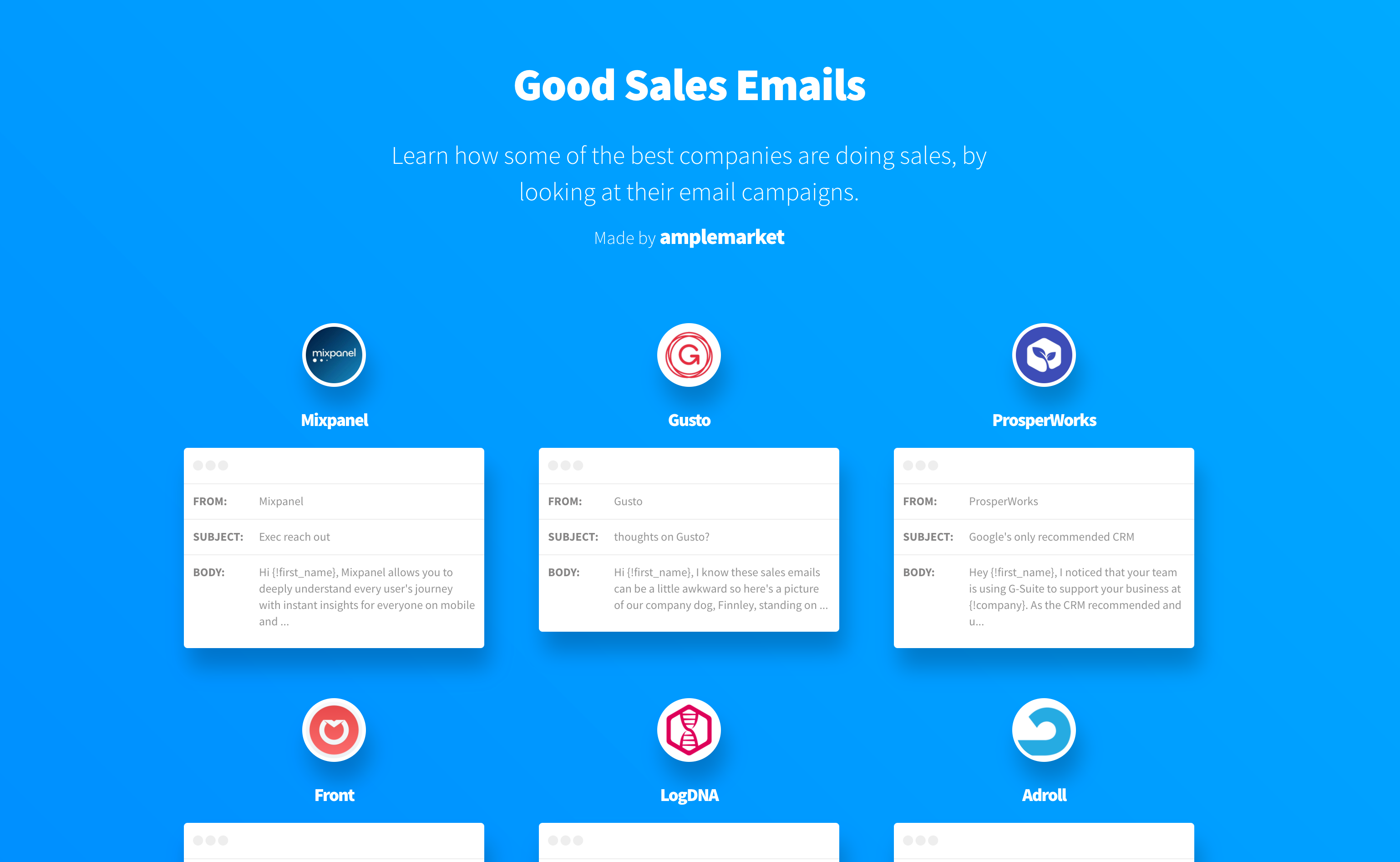 That's why we created Good Sales Emails, so that you can get inspiration from what some of the best companies are doing in terms of email sales. Learn how companies like Mixpane… See more