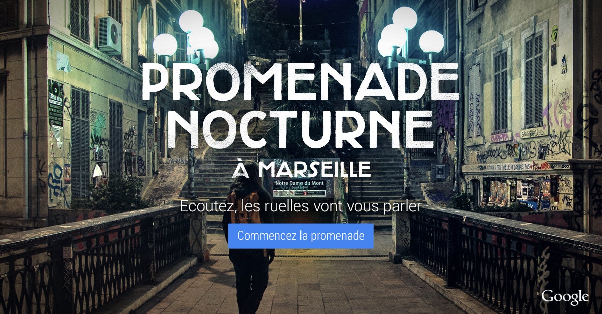 Cool project from Google combining Streetview with an audio to create a really immersive tour of Marseille. Like Detour, but for those who can't make it there in person.