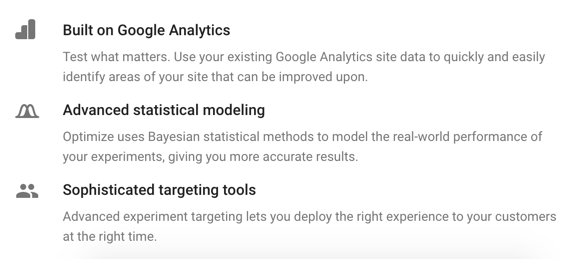 Whether it’s a custom-tailored message at checkout or a completely revamped homepage, Optimize shows you which site experiences engage and delight your customers, and gives you the solutions you need to deliver them.