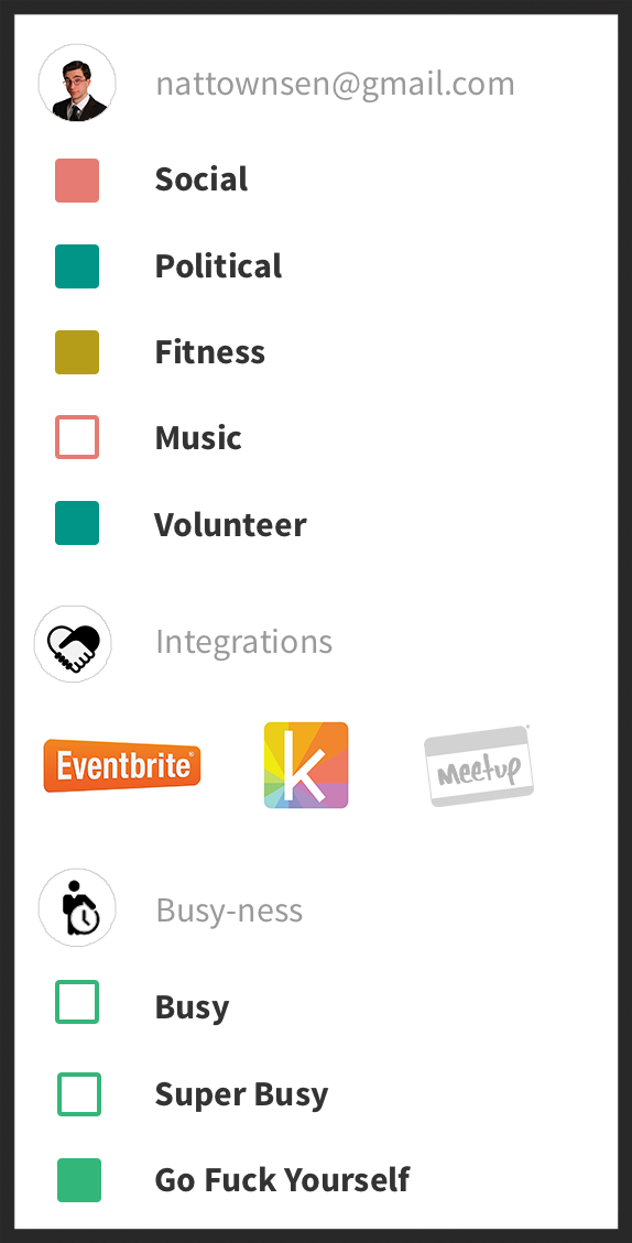 Got This Thing™ is the world's first "no-ductivity" app. It allows you to populate your calendar with real events for real excuses for your fake friends.