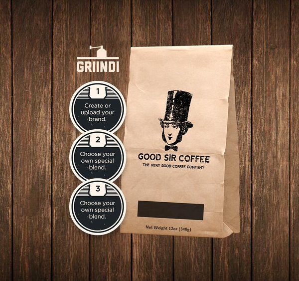 I'm the co-founder of Griindi. Griindi is a custom branded coffee service. You design your brand from one of our starters, select your blend, and we ship it right to you. You can also share your created brand if you'd like.