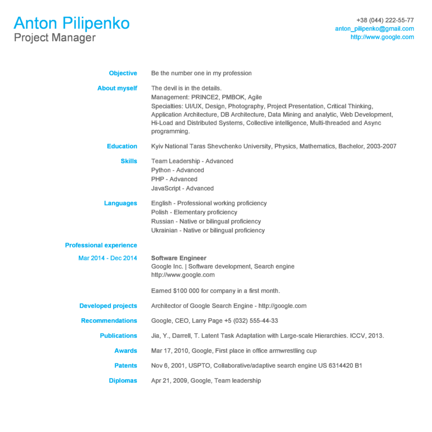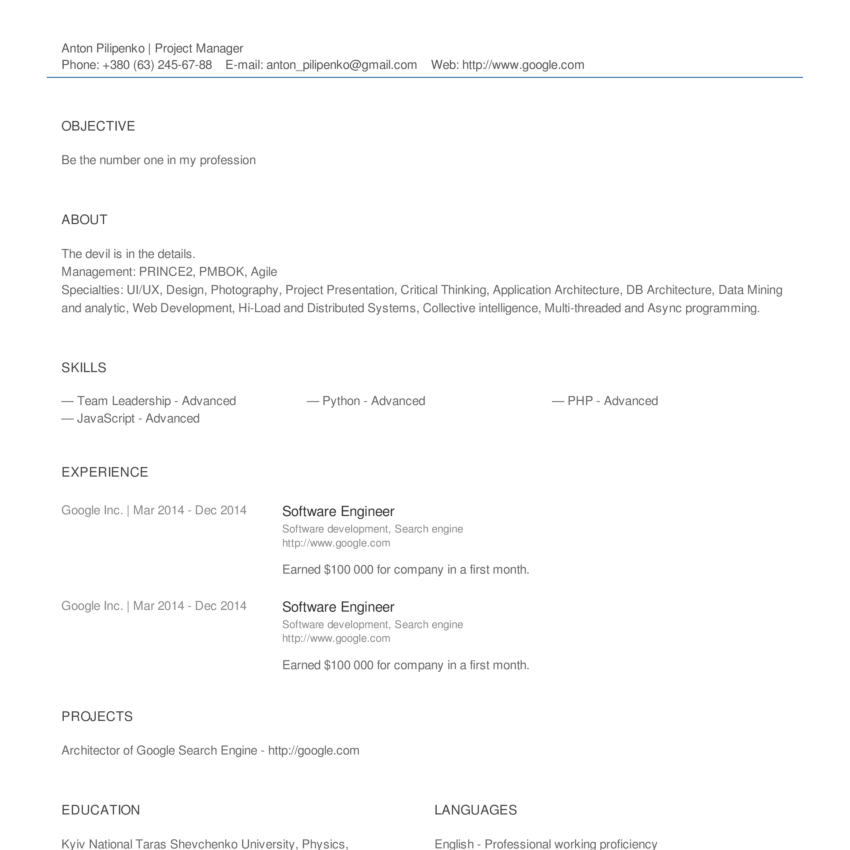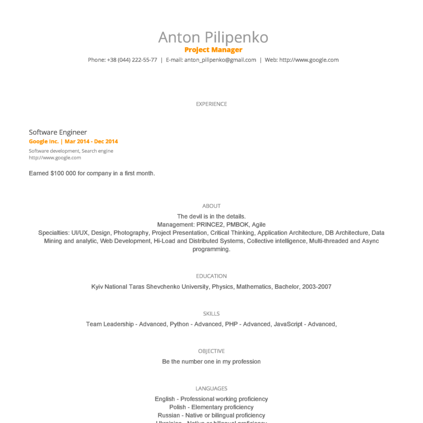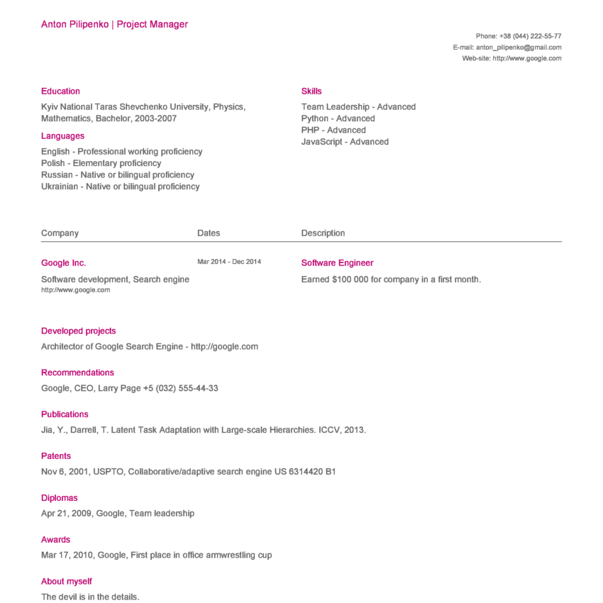 Stylistically correct and visually appealing resume increases your chance to find decent and well-paid job.