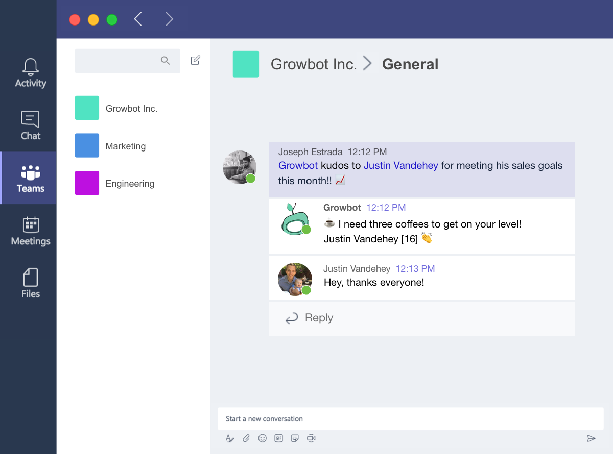 Hey Product Hunt! I'm usually a hunter, but it's not often I get to post something I've worked on myself! We're really excited to be a launch partner for Microsoft Teams, which is our second platform for Growbot. It's a huge opportunity for us, and we're excited to bring Growbot to a new audience!
