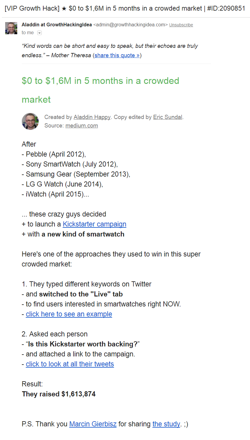 Growth Hacking Idea delivers one short inspiring growth hack every day to your email.