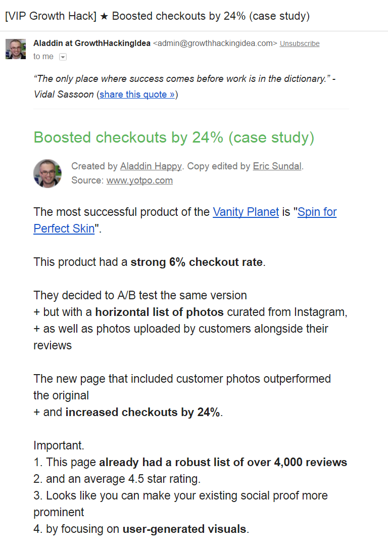 Aladdin delivers top quality growth hacking resources to your inbox for free and if you're a VIP you'll get access to the slack community too. I love GHI and highly advise anybody to join!