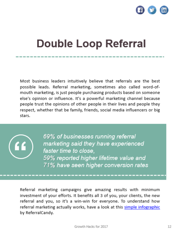 Hello everyone, I have written a comprehensive guide about 20 growth hacks that will help you grow your business in the coming year. Each hack is a stand-alone guide in itself and comes with tools that will help you achieve the growth. This guide is for every entrepreneur, growth hacker, marketeer or any individual who is trying to grow a startup or a produc… See more