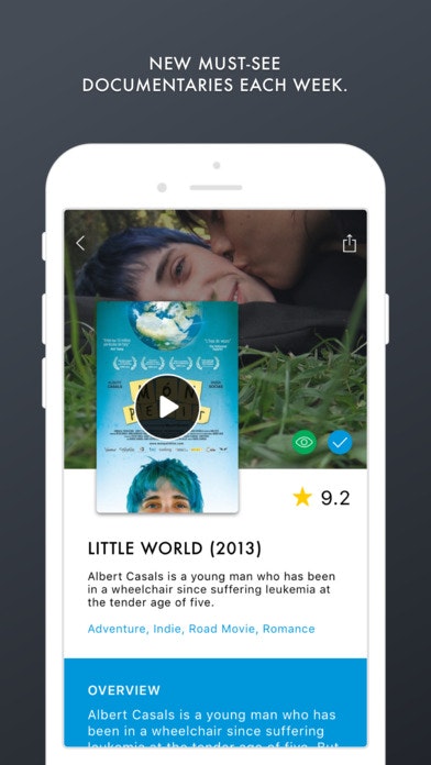 We selected by hand the world’s best and award-winning docs from around the globe. New must-see documentaries each week. We show films with the capacity of turning anyone into a lover of the genre.