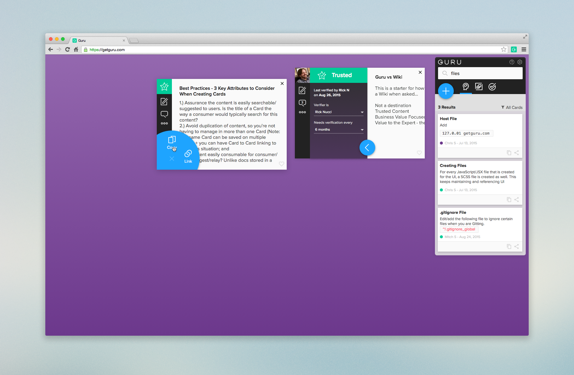As much as I feel like this has a lot of potential, I have to admit, I'm having a hard time understanding what Guru does. The landing page is a little text-heavy and filled with vague phrases like "capture and share knowledge with your team". How does it help me do that?