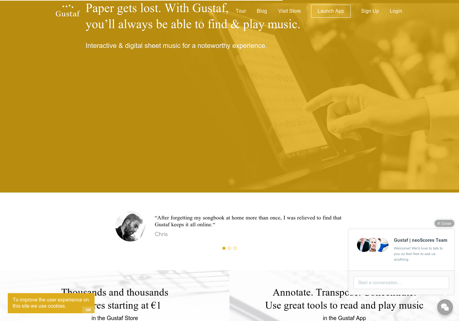 Paper gets lost. With Gustaf, formerly known as neoScores, you’ll always be able to find & play music. Interactive & digital sheet music for a noteworthy experience.
