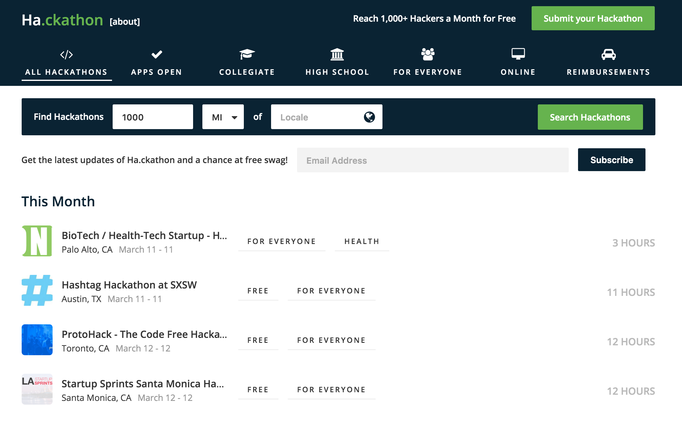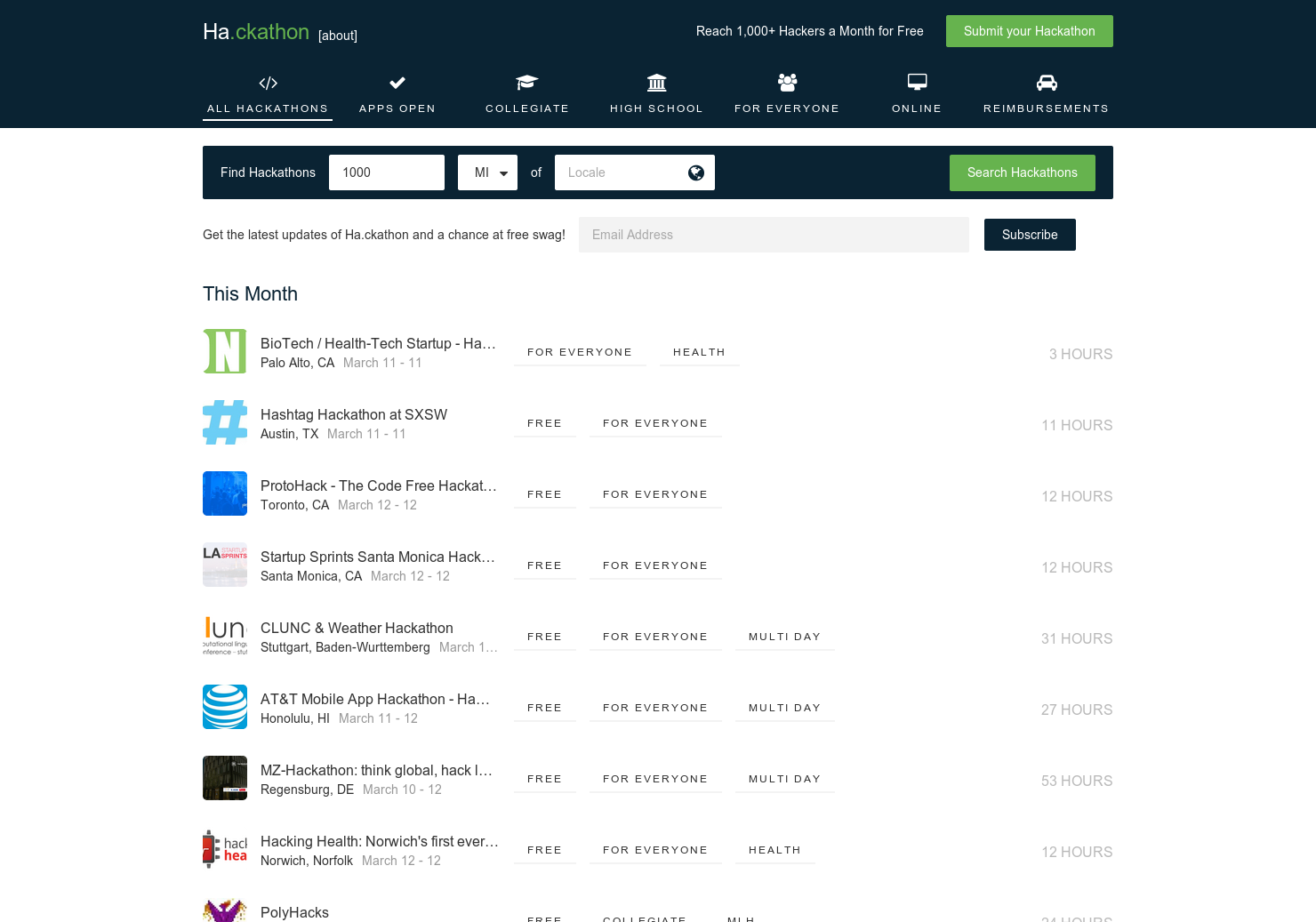 Great idea and layout/design, I only wish there were more hackathons near me! :)