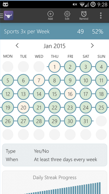 This free Android-only app follows Seinfeld's famous "don't break the chain" productivity tip. It's nicely designed and looks fun enough to give it a try.