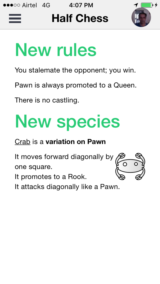 The backstory: The work on halfchess started much before it was made into an app. I have always believed that there is a correlation between children getting better at maths and children being good at chess. I believed that it would be easier for children to learn and play chess, if they did so on half of the board. The game is faster and encourages both pla… See more