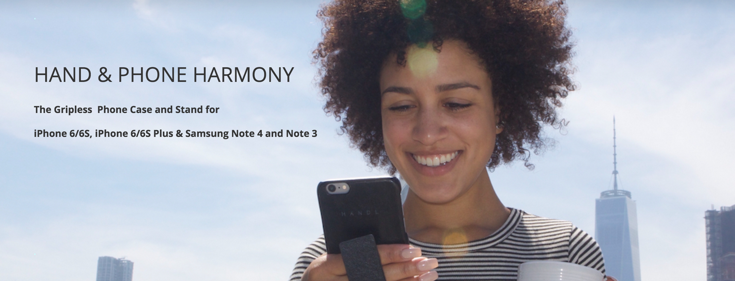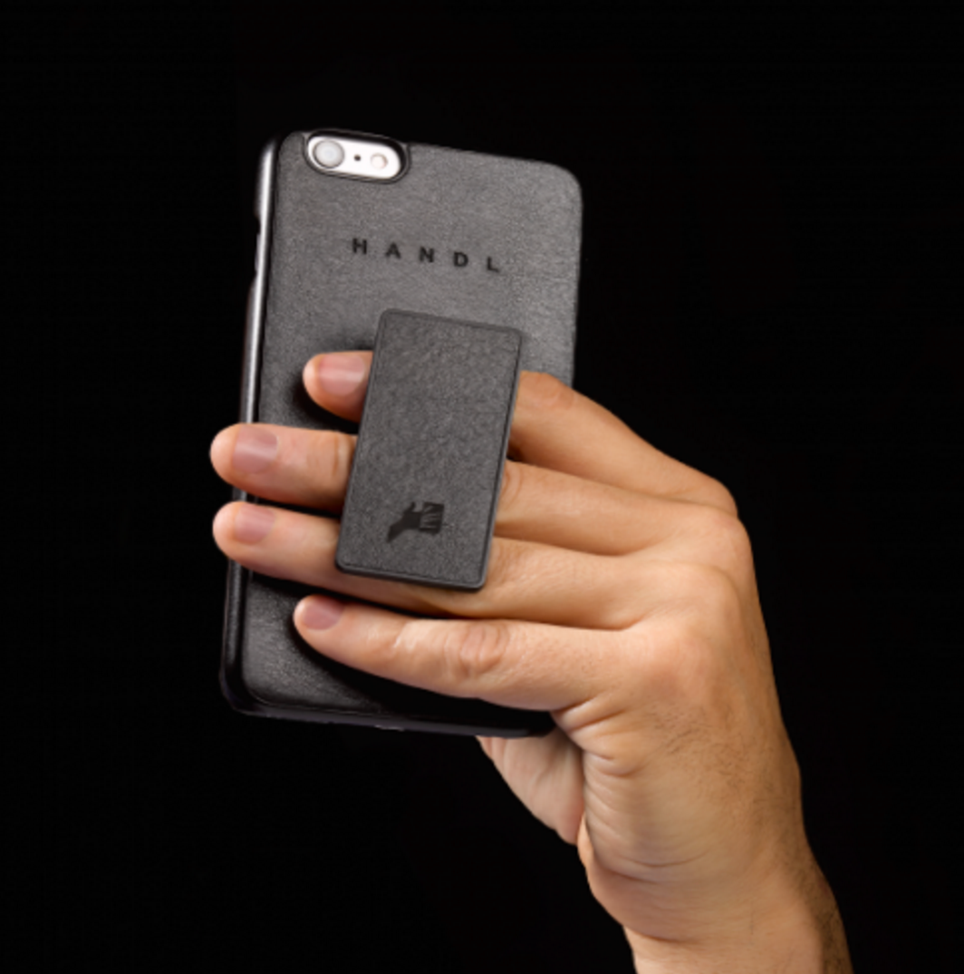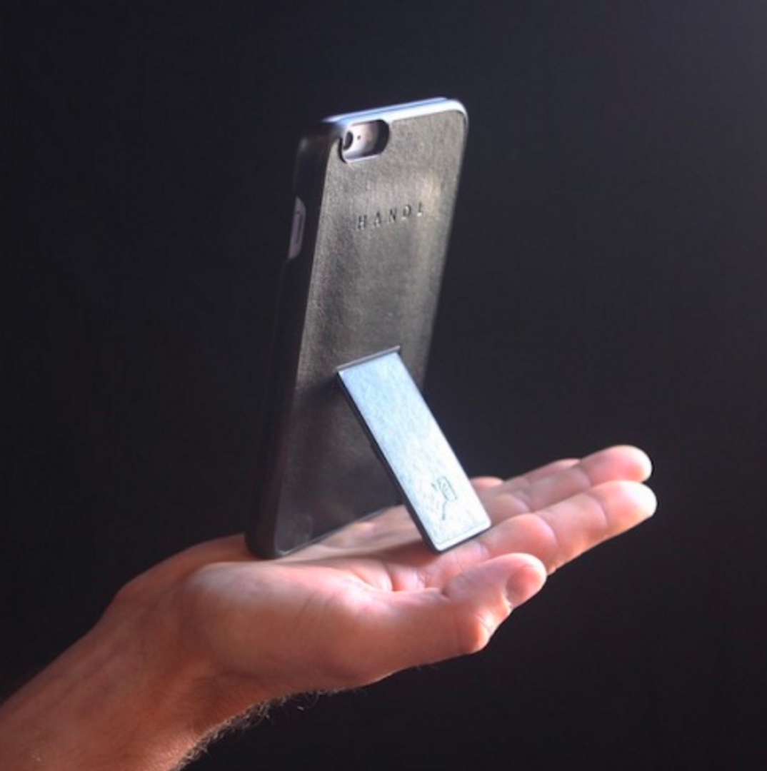 HANDLiberation (HandL) is a sleek phone case that uses a brace system (tension cord) to apply pressure on your fingers against the back of the phone, thus eliminating the need to grip the device.