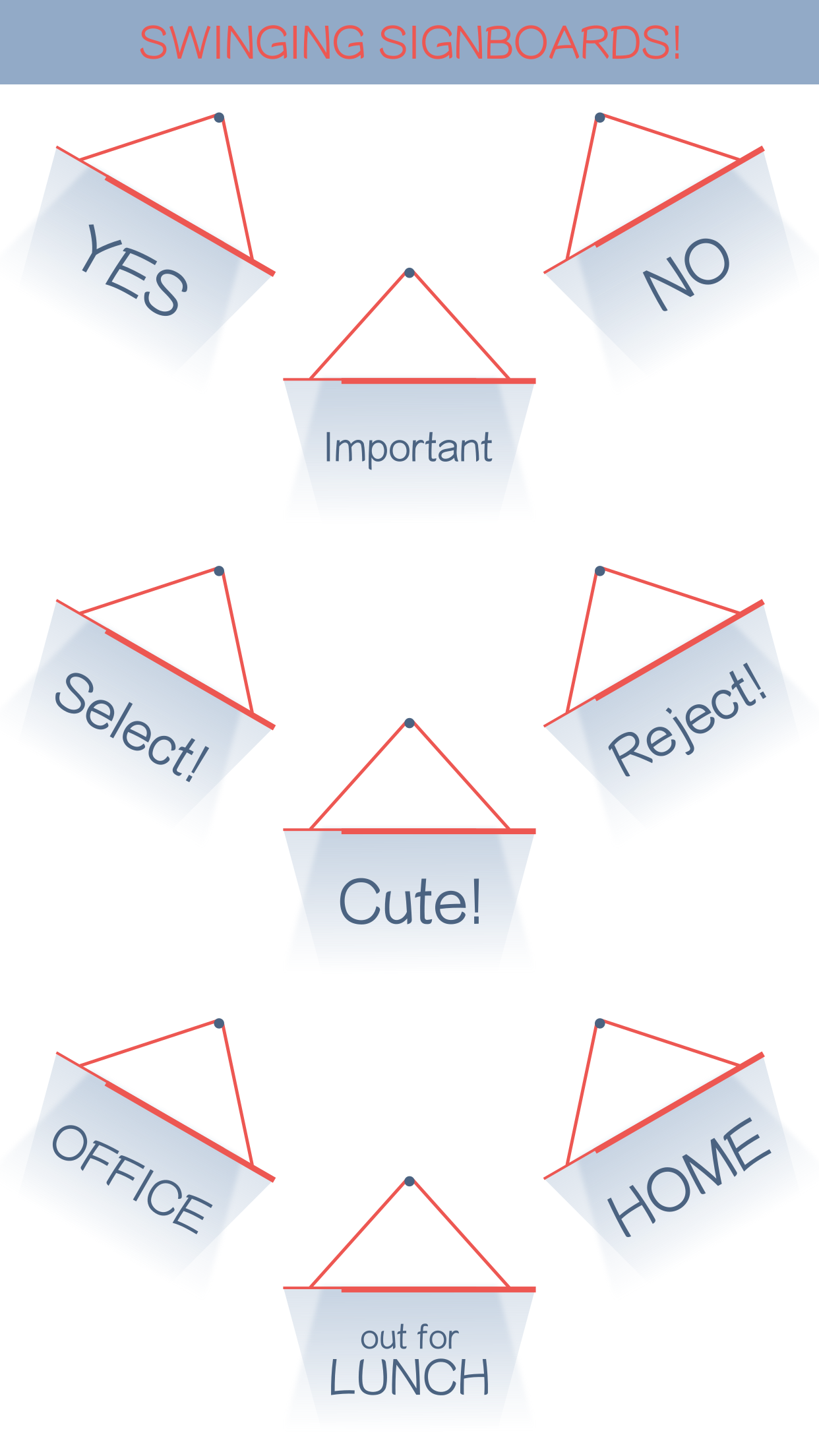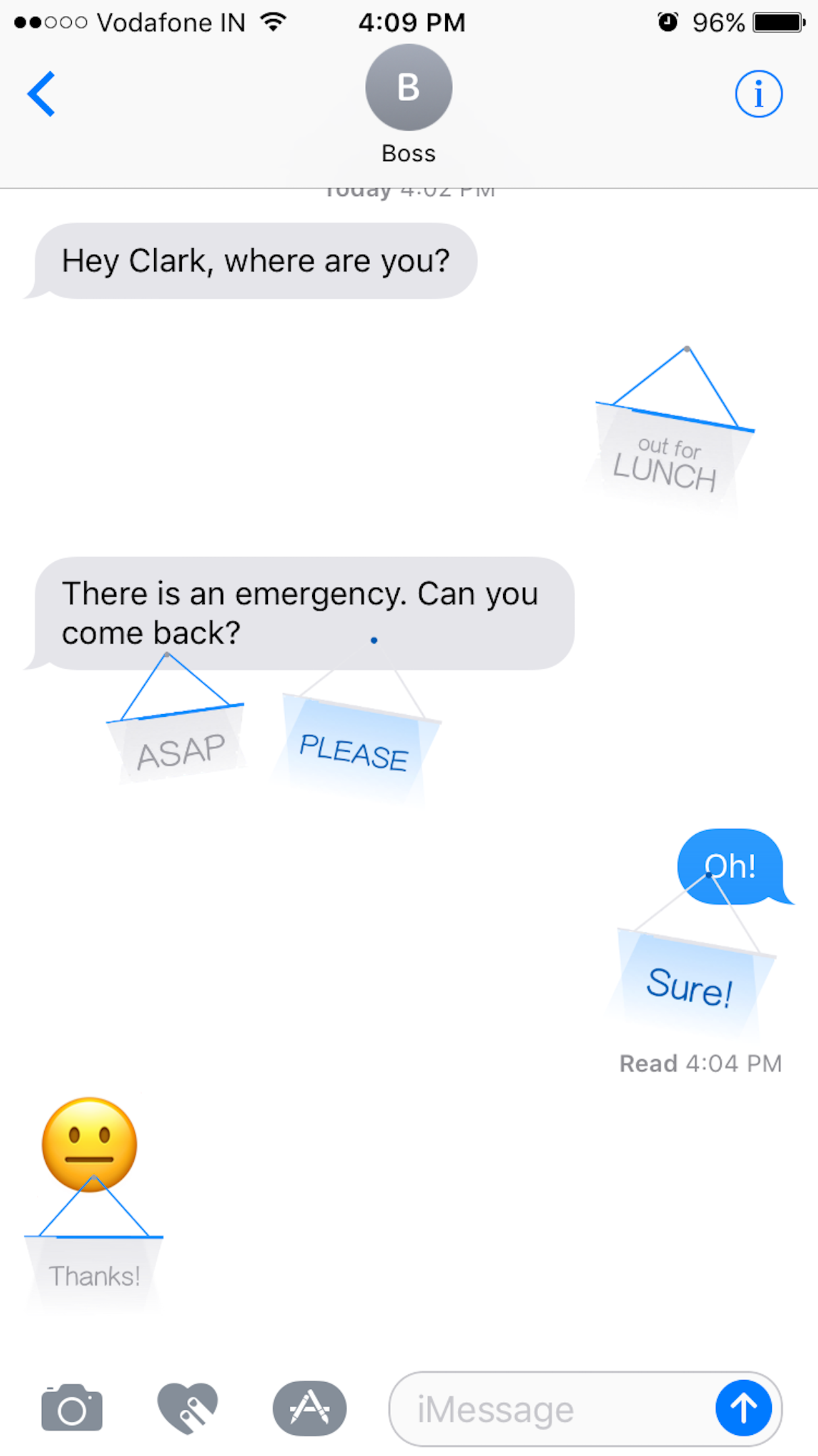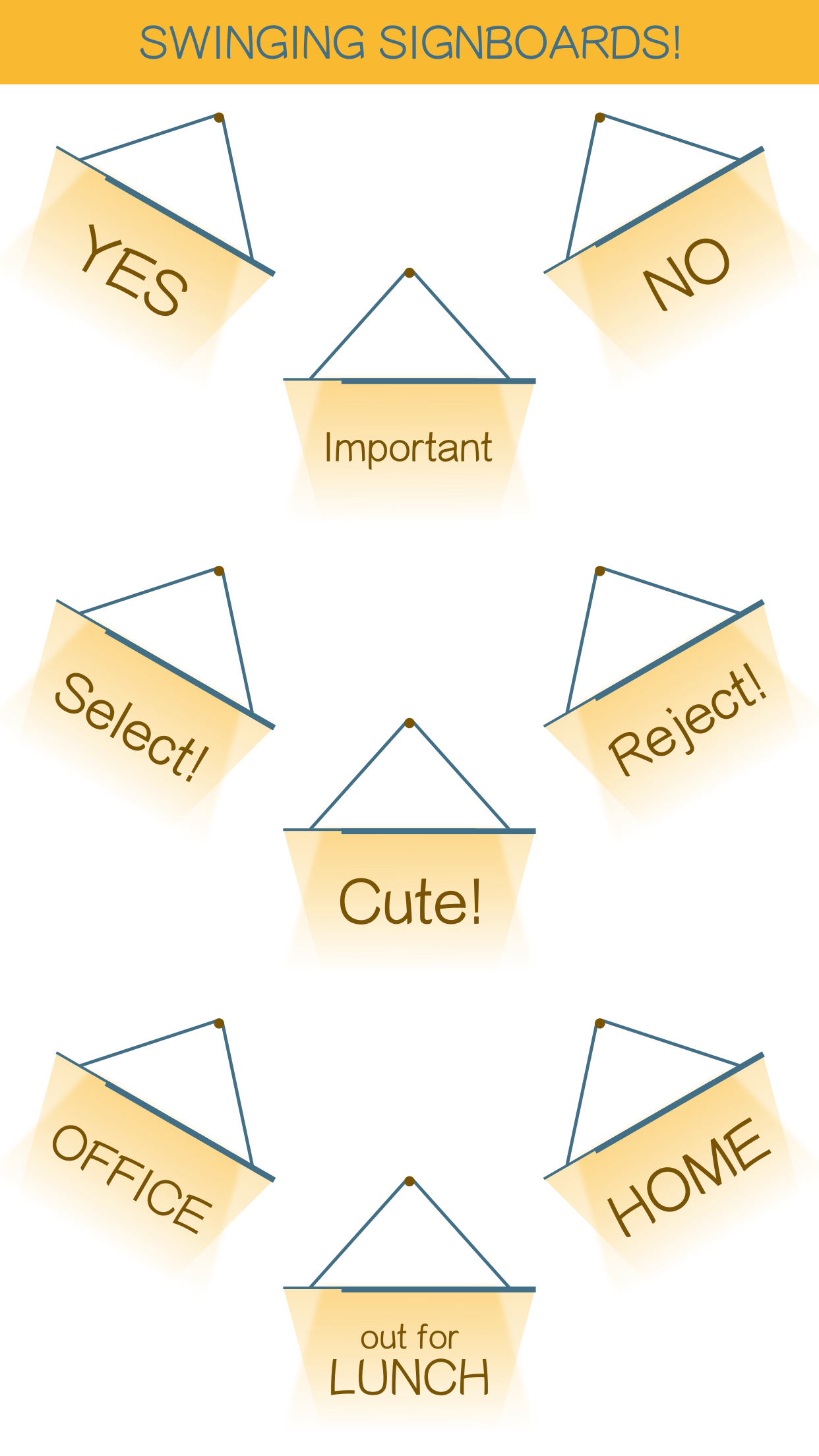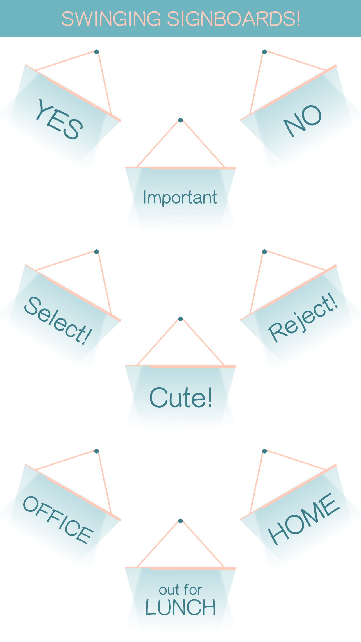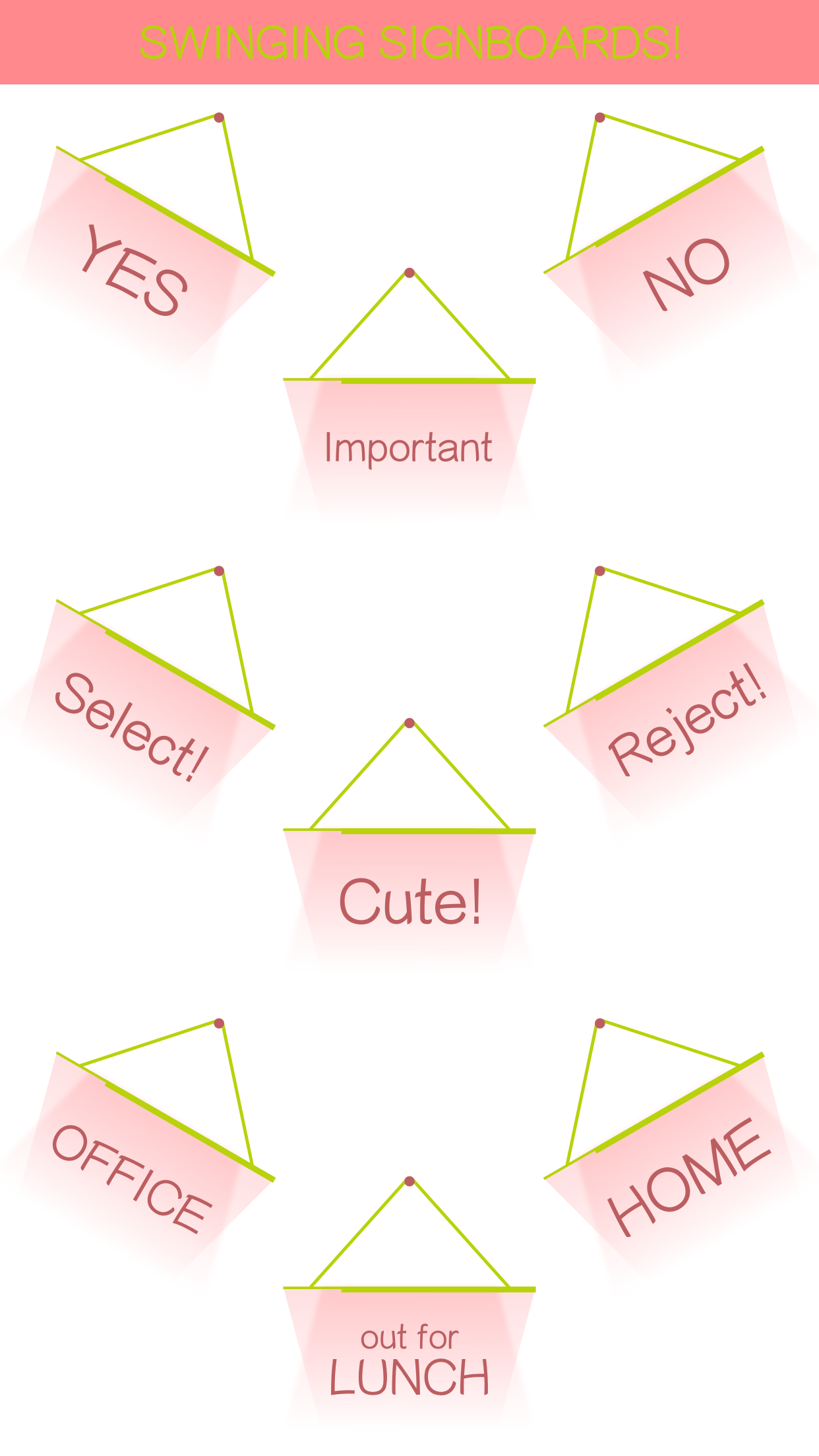 Hello people! I took some time out to make some simple and sober iMessage stickers in the form of signboards! Signboards have a simple swinging animation and quite a few commonly used messages to choose from. They are available in plenty of colors as well! Useful for tagging some important messages in a conversation.