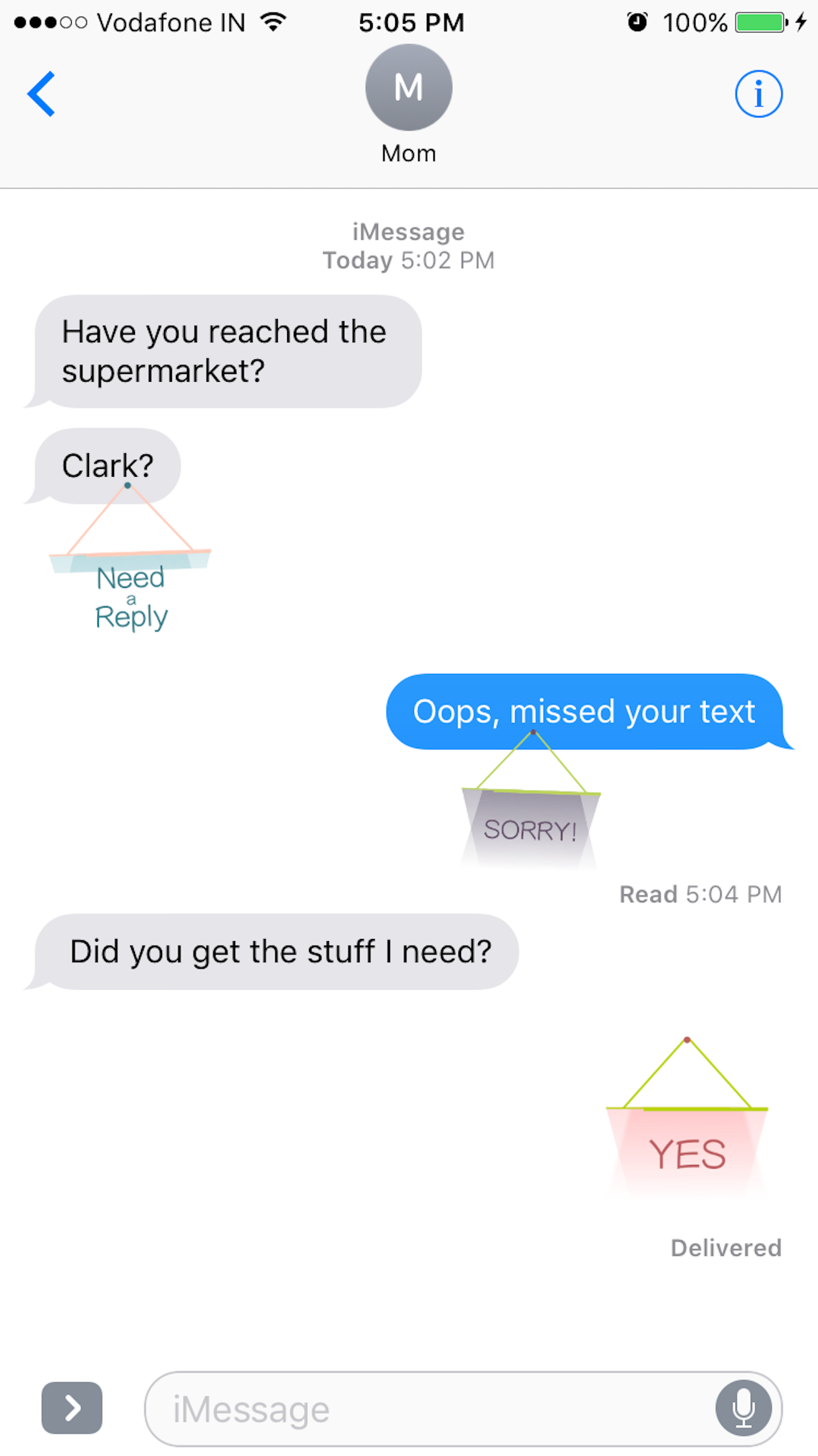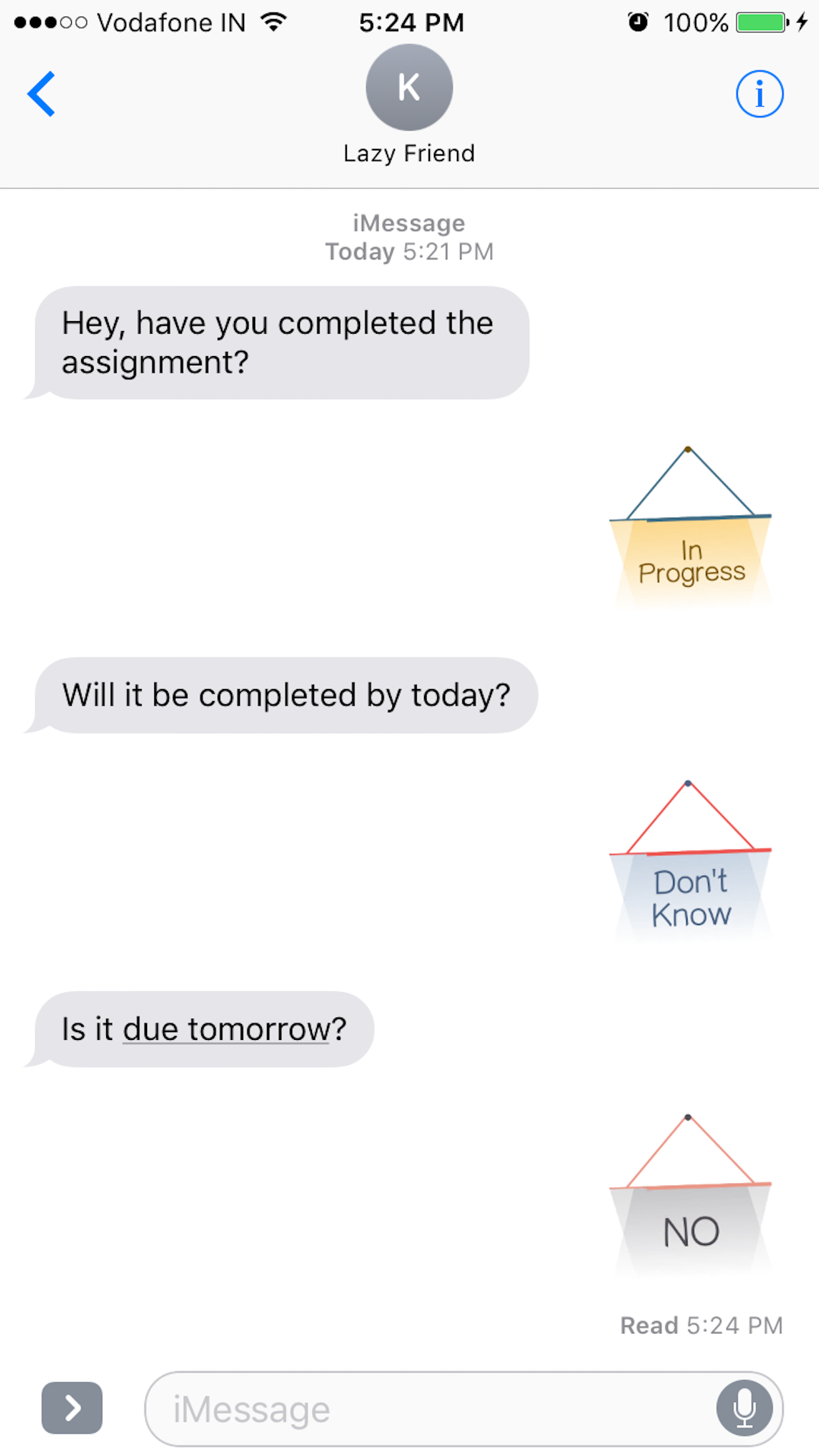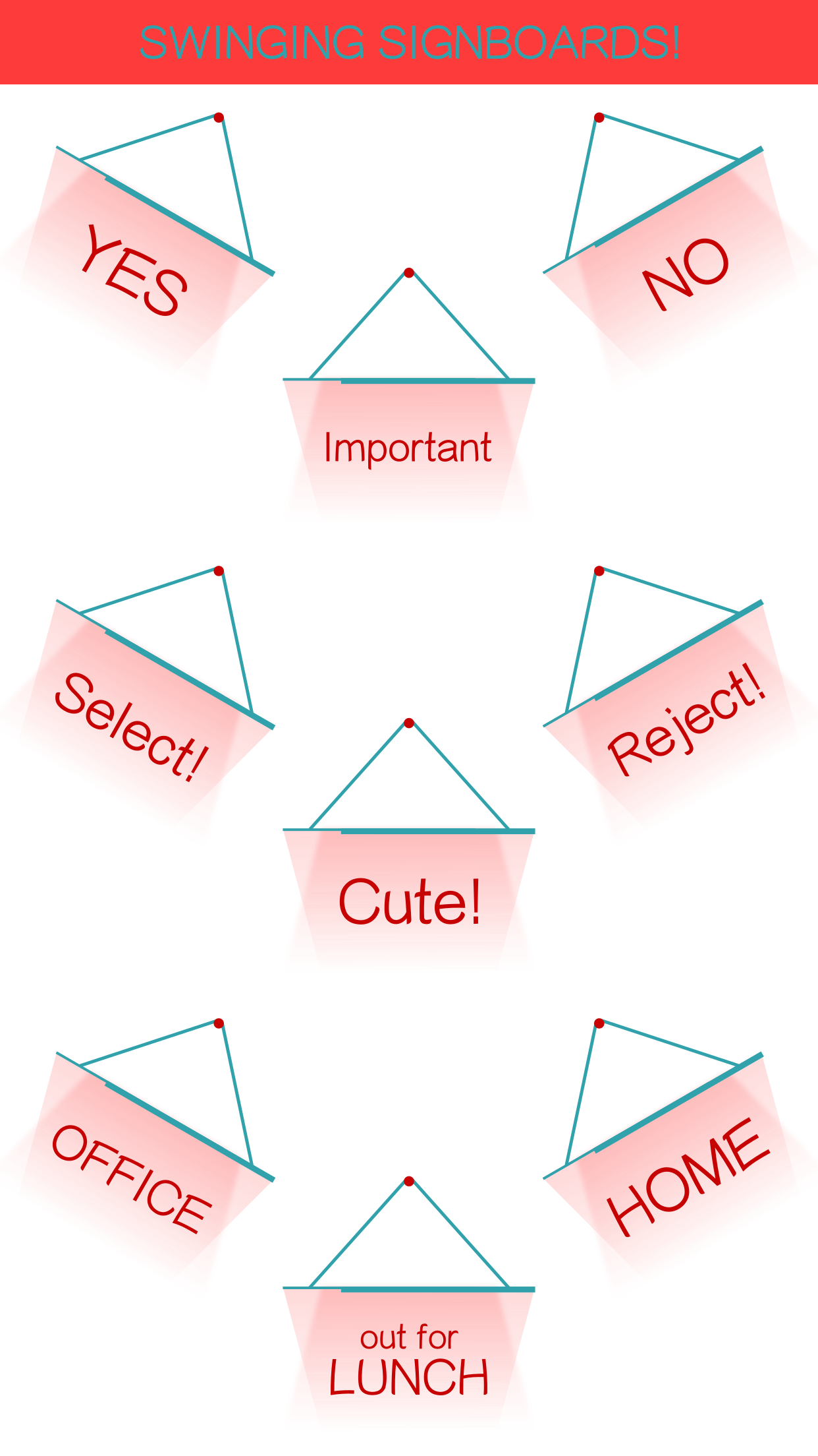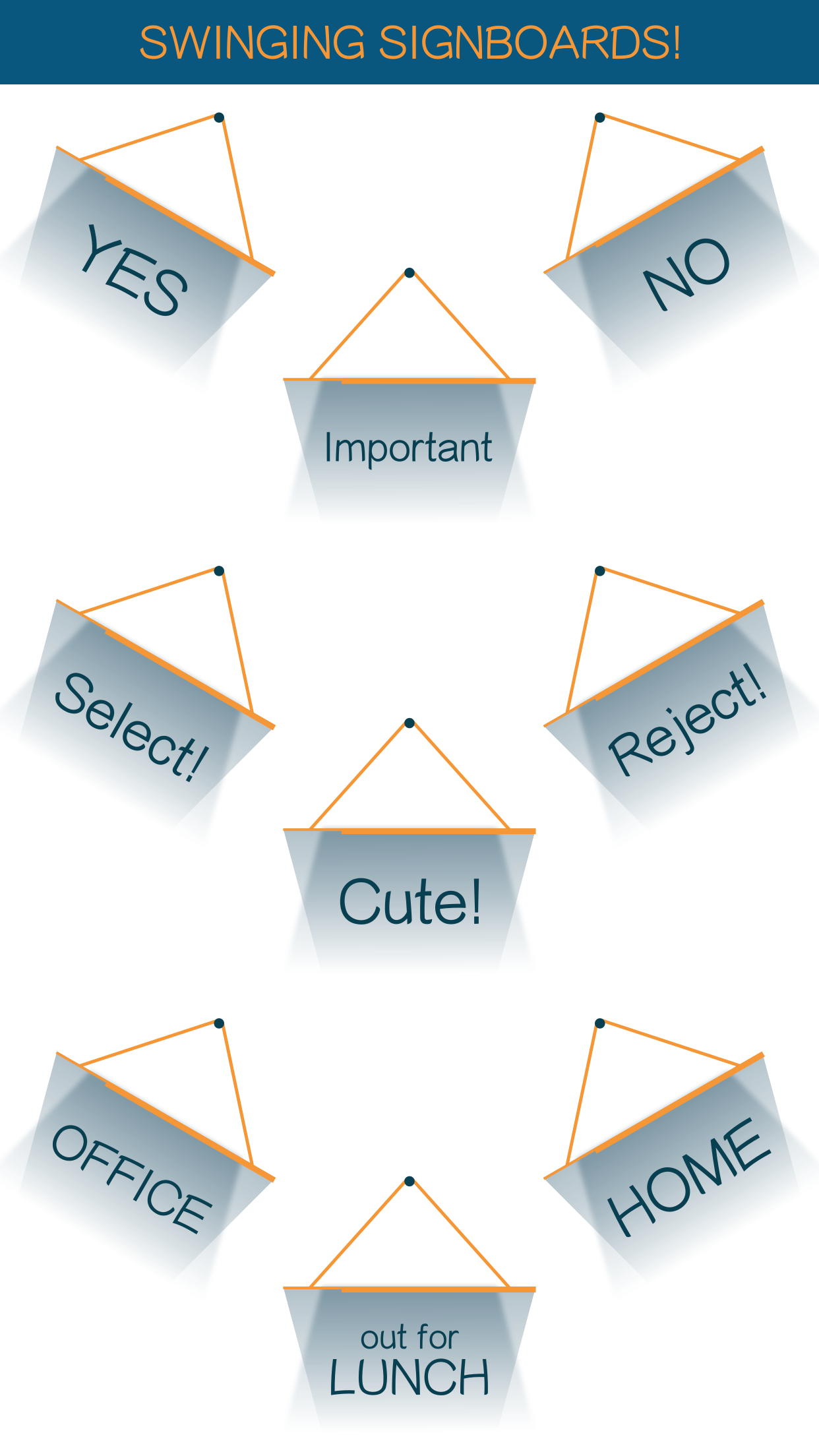 Hello people! I took some time out to make some simple and sober iMessage stickers in the form of signboards! Signboards have a simple swinging animation and quite a few commonly used messages to choose from. They are available in plenty of colors as well! Useful for tagging some important messages in a conversation.