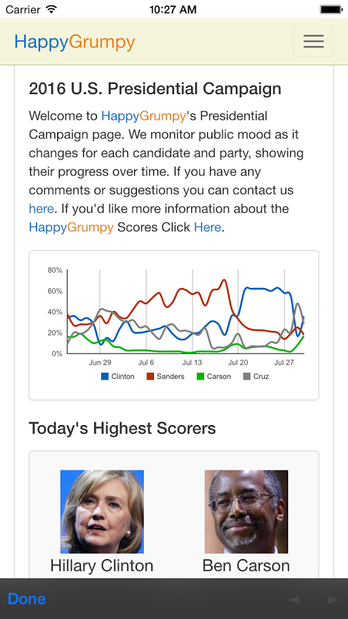 25th Oct HappyGrumpy shows Ben Carson leads Donald Trump nationally https://www.happygrumpy.com/2016...