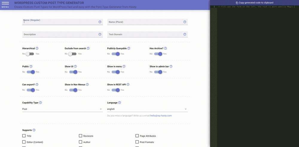 as a WordPress developer I love the tool GenerateWP. It takes over the unimportant and default WordPress tasks, like generating shortcodes or custom post types. But at least I needed to much time for this default task and the tool was not very smart.