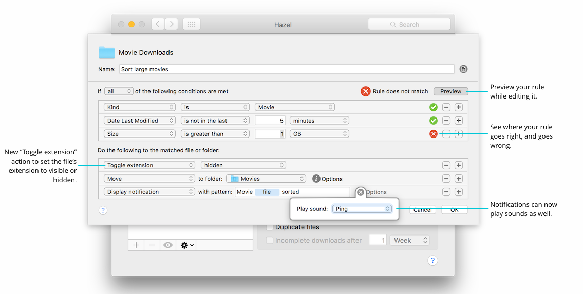 Big update of one of the best utility apps on the Mac. Hazel is my number one app when it comes to file automation. It can do stuff no other Mac app can do. File docs in special folders when added to certain folders, but only when added today and when the file extension is jpg or docx: that kinda stuff. Absolutely brilliant.