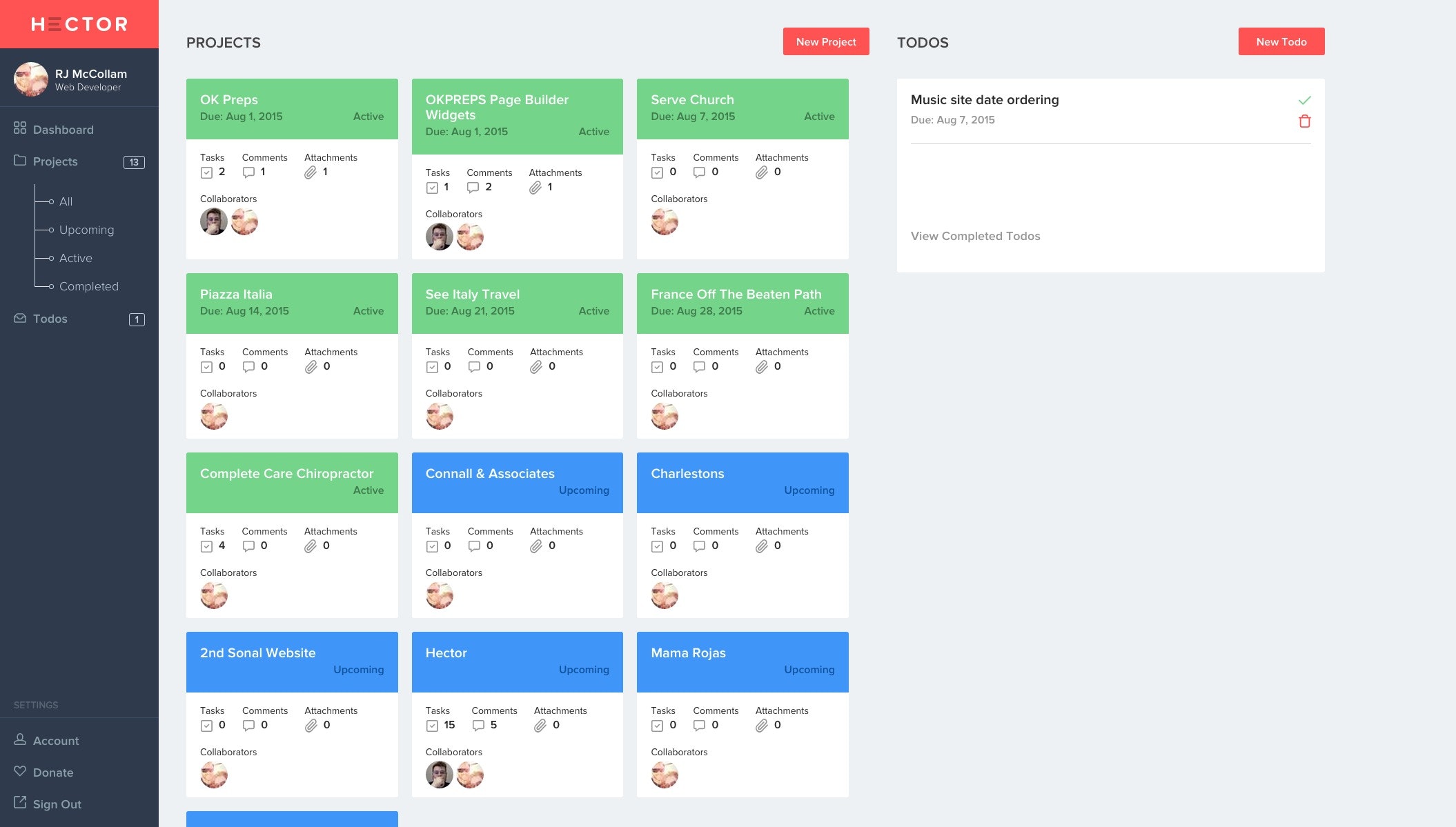 The promise of Hector is simple, one screen where you can see all of your projects and todos regardless of who you are working with.