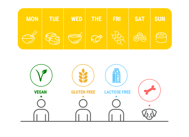 - Hello Egg plans your weekly meals according to your dietary preferences and adjusts to unpredicted events, like a spontaneous at-home dinner with your vegetarian friend.