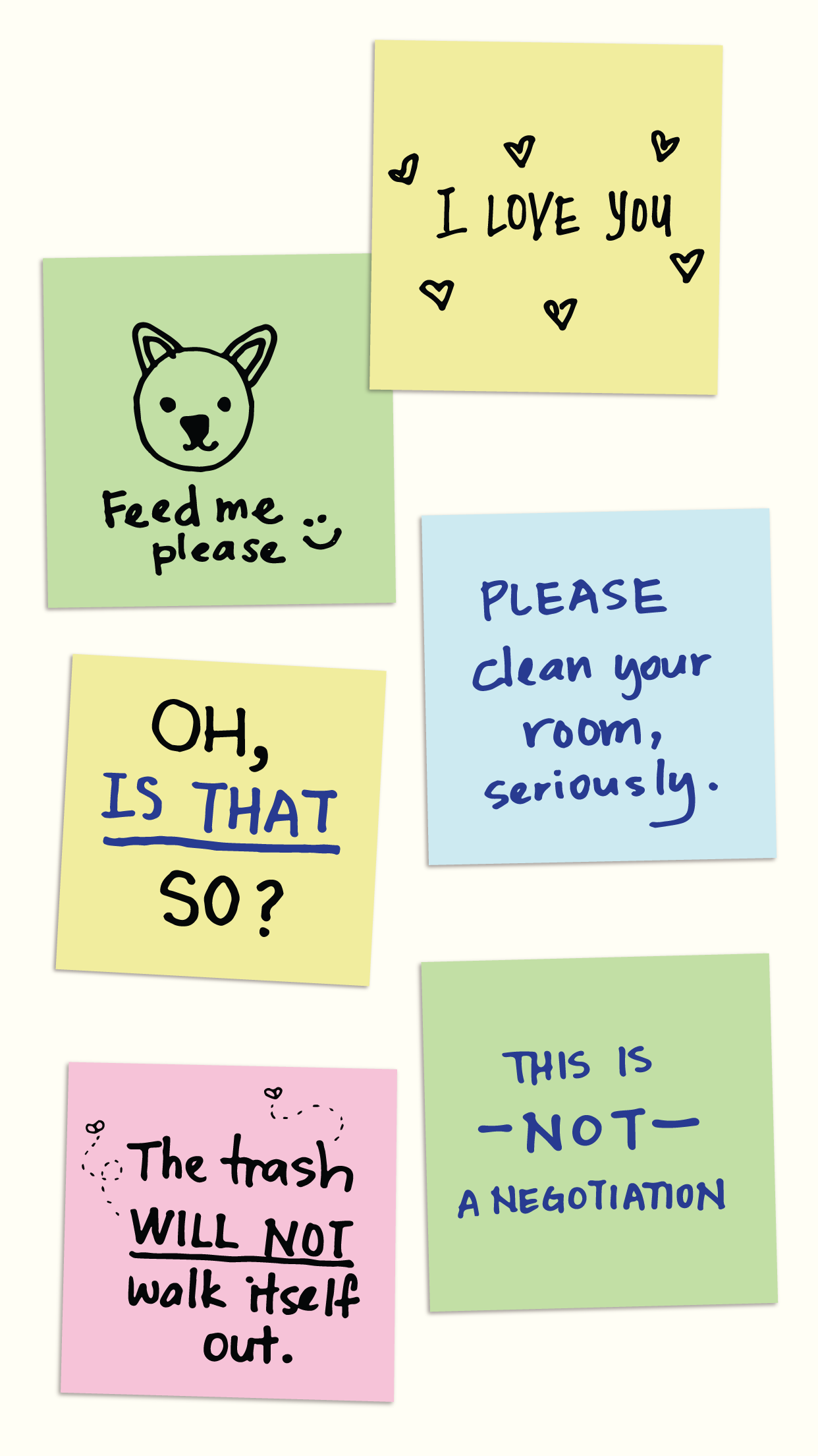Hey guys! This is something I made for moms to use with teenagers. Moms tend to have to repeat what they say a lot to their kids. So with this, they can just quickly pick a message and move on to other stuff. Hello, productivity!