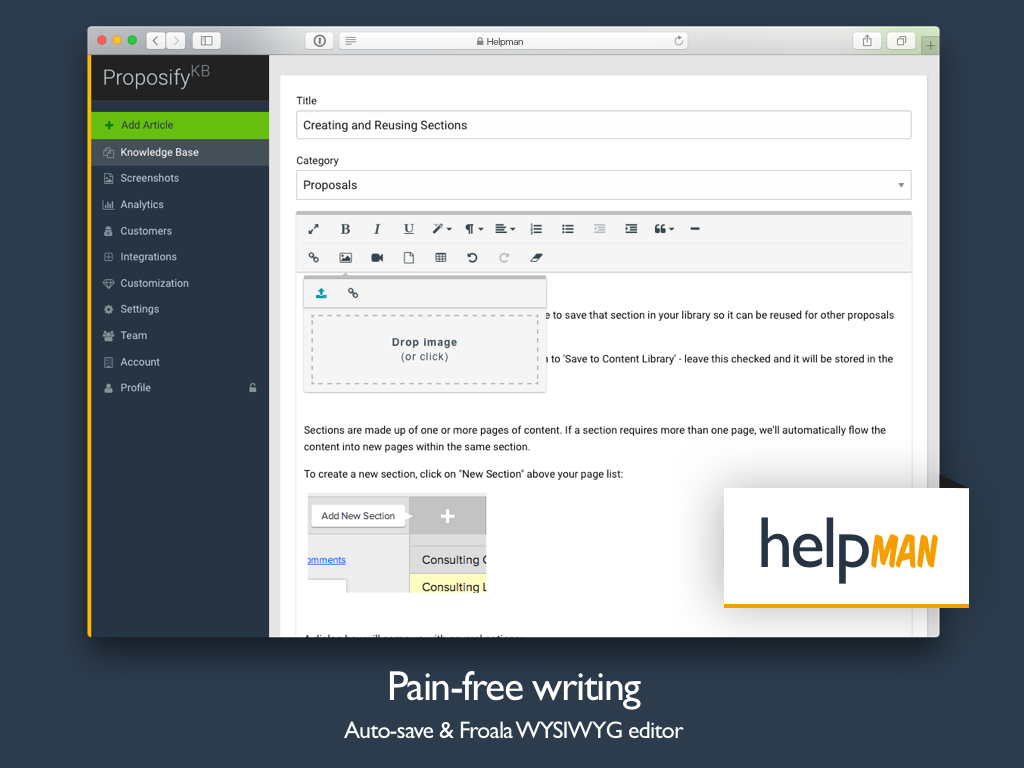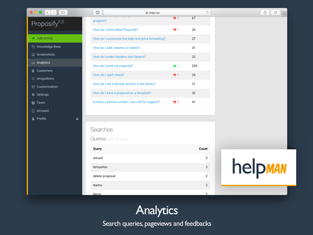 Helpman resolves a few pain points for Customer Support teams, like updating screenshots on-the-fly or checking what users are searching for. The team is focused on providing value to Intercom customers, as a knowledge base would reduce the number of incoming requests.