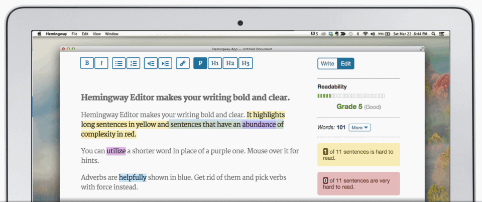 I have to say I'm conflicted about this app. After using the web version for about a day, I decided to pay for it instantly because it just brings so much value. I tend to write very long sentences so Hemingway has been great to keep me grounded. I find my blogposts have become a lot more readable and enjoyable thanks to Hemingway.