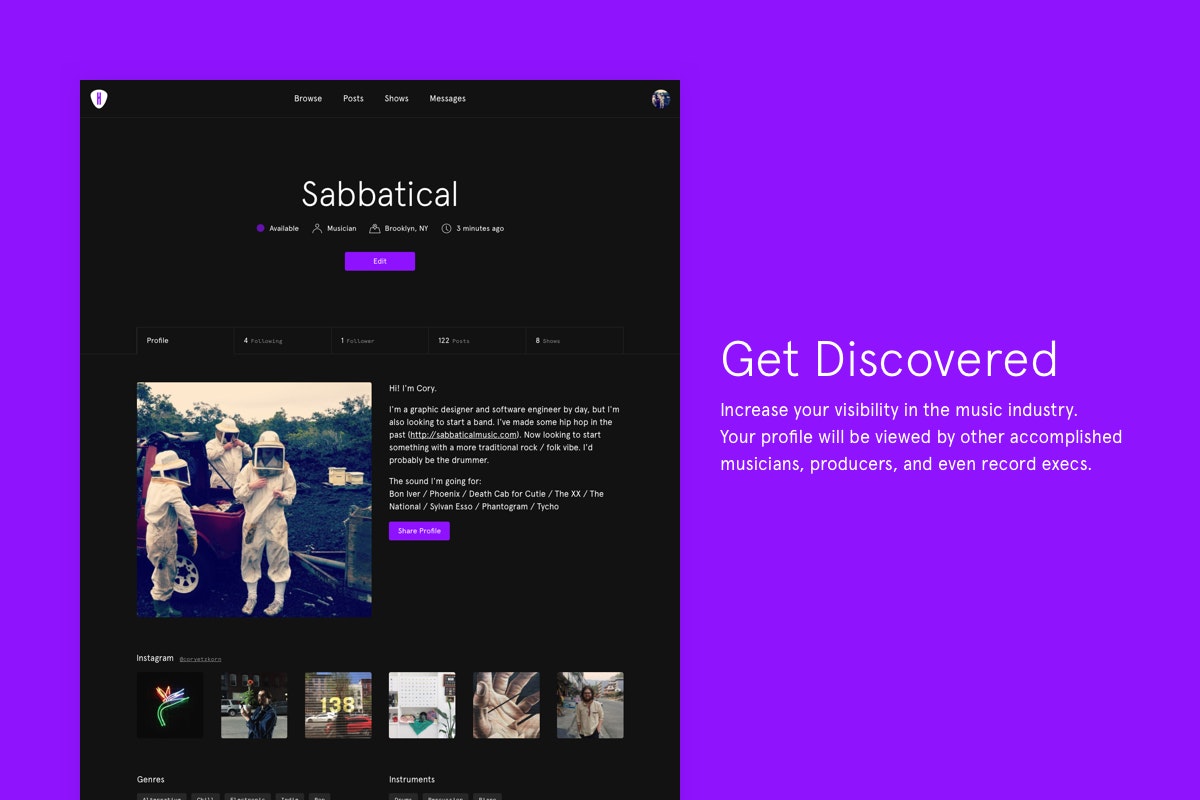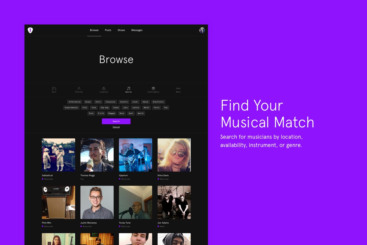 I'm Cory β founder of Hendrix βΒ a new social community for musicians. Hendrix is dedicated to connecting and promoting incredible musicians in cities across the US. We're going live today and would love to have any musical product folks be the first to check it out. Thanks for taking a peek!