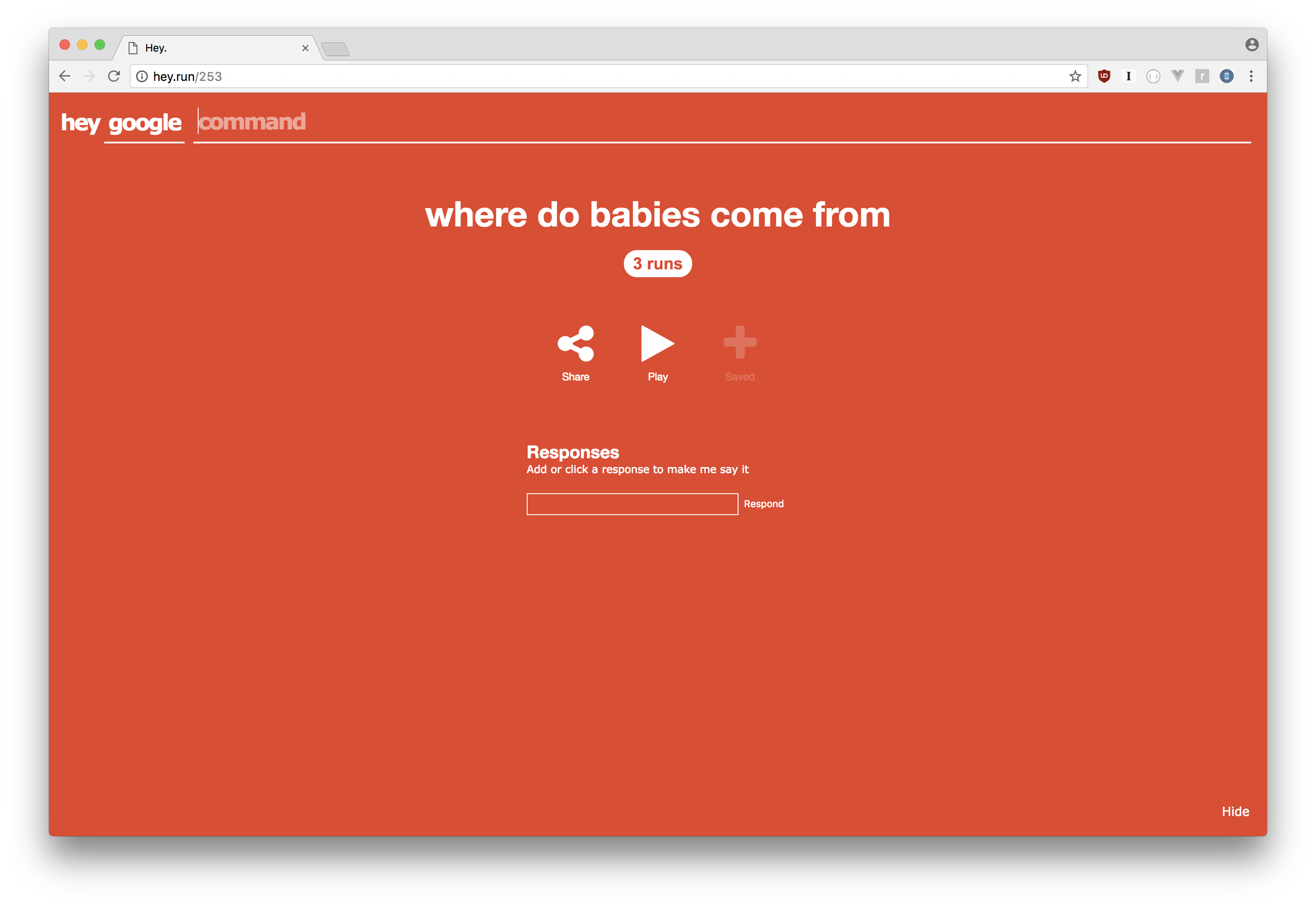 But most importantly this is useful for lazy people like me who would rather not speak. There's autocomplete built in, so it will start suggesting you stuff as you start typing. You simply need to pick from all the various commands other people have used.