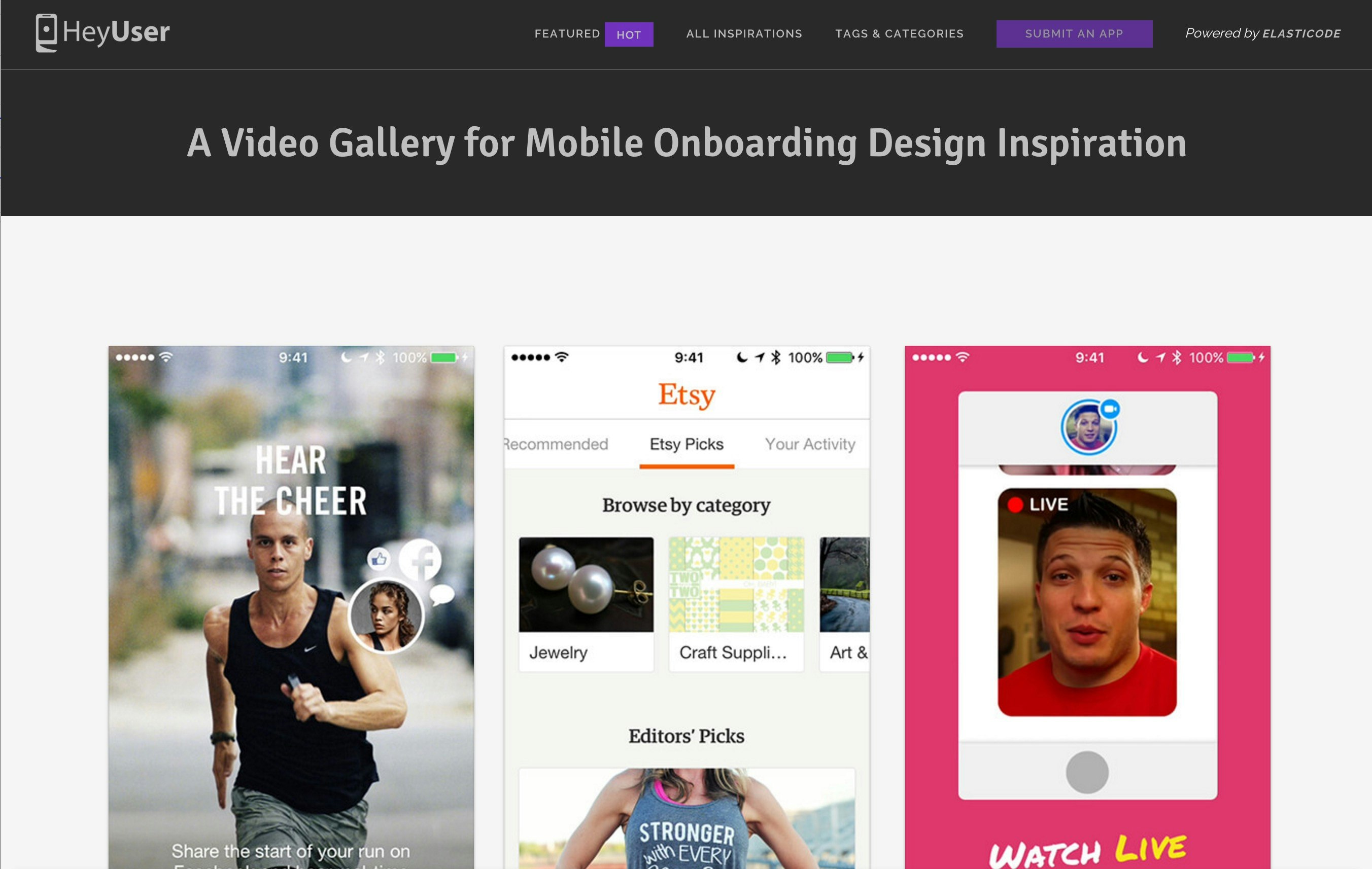 HeyUser is a video gallery where app developers, marketers, and product managers can find and share mobile onboarding inspiration.