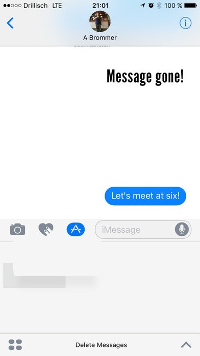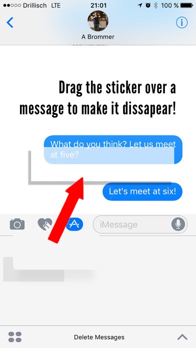 Deleting a message in iMessages does not really delete it - at least not at your chatpartners end. This problem is solved with a white sticker which is dragged over the message. I am sure Alex can tell you more about this :-)