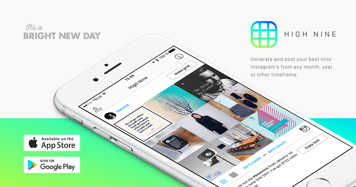 High Nine for iOS and Android (Generate and post your best nine Instagram photos from any timeframe)