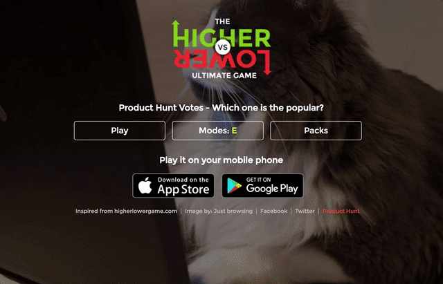 My new favorite game. Simply guess which of two products received more Product Hunt upvotes.