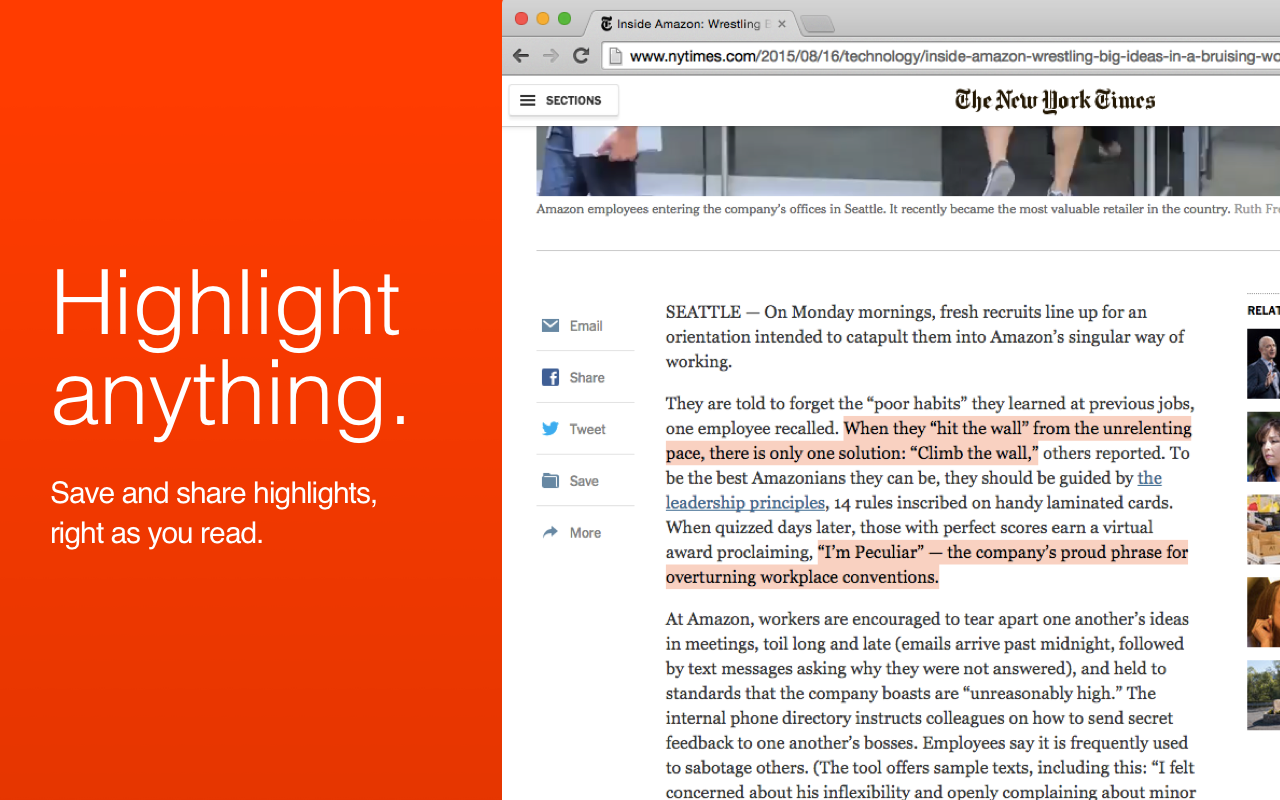 Now Highly works on every single website! Add their highlighter button for Chrome, and your highlighter stays one click or keyboard shortcut away, anywhere. (Except for "shifty" pages like gmail :)