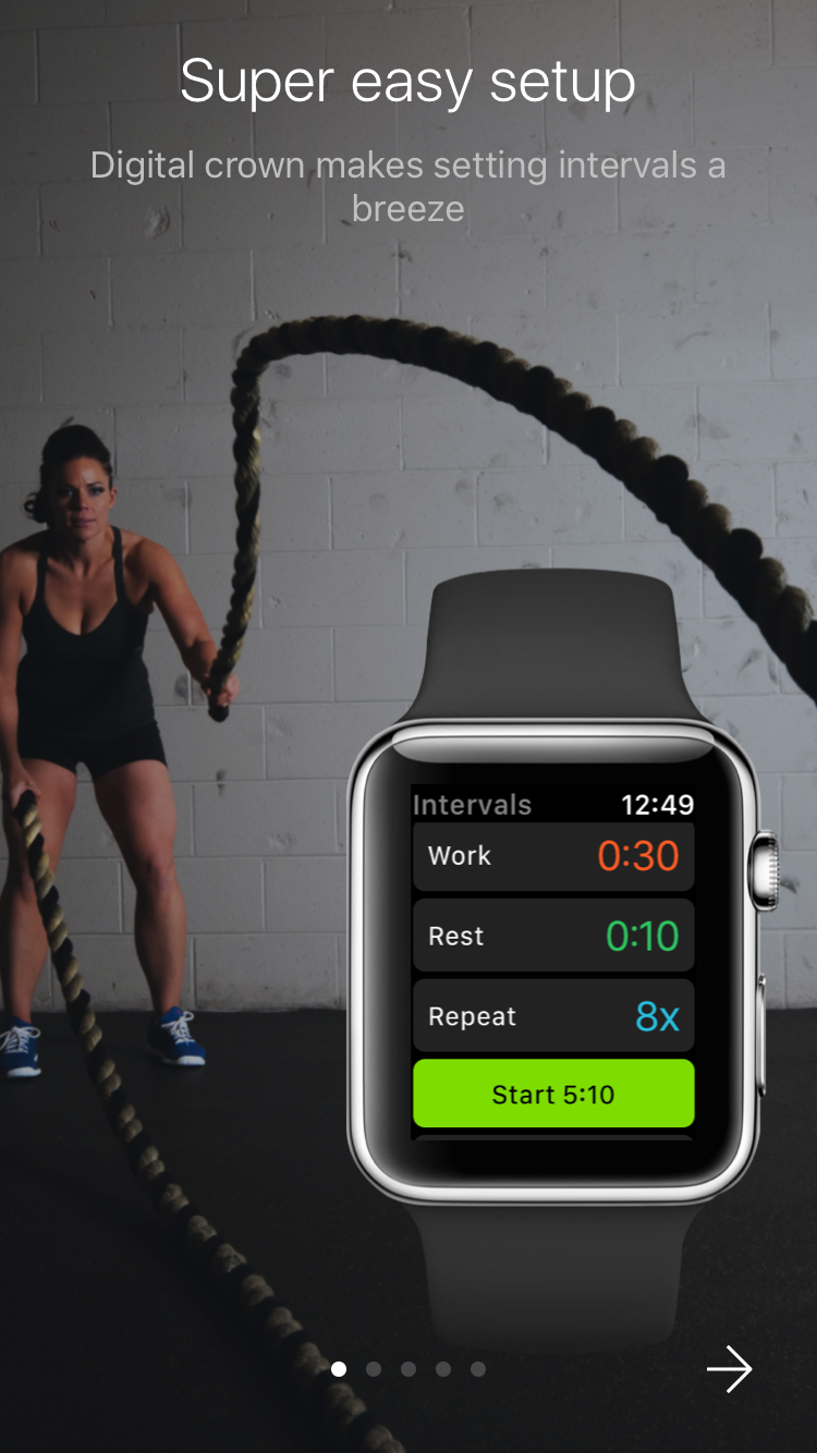 Setting up intervals "while working out" should be easy. Large fonts and digital crown makes it a breeze for this app.
