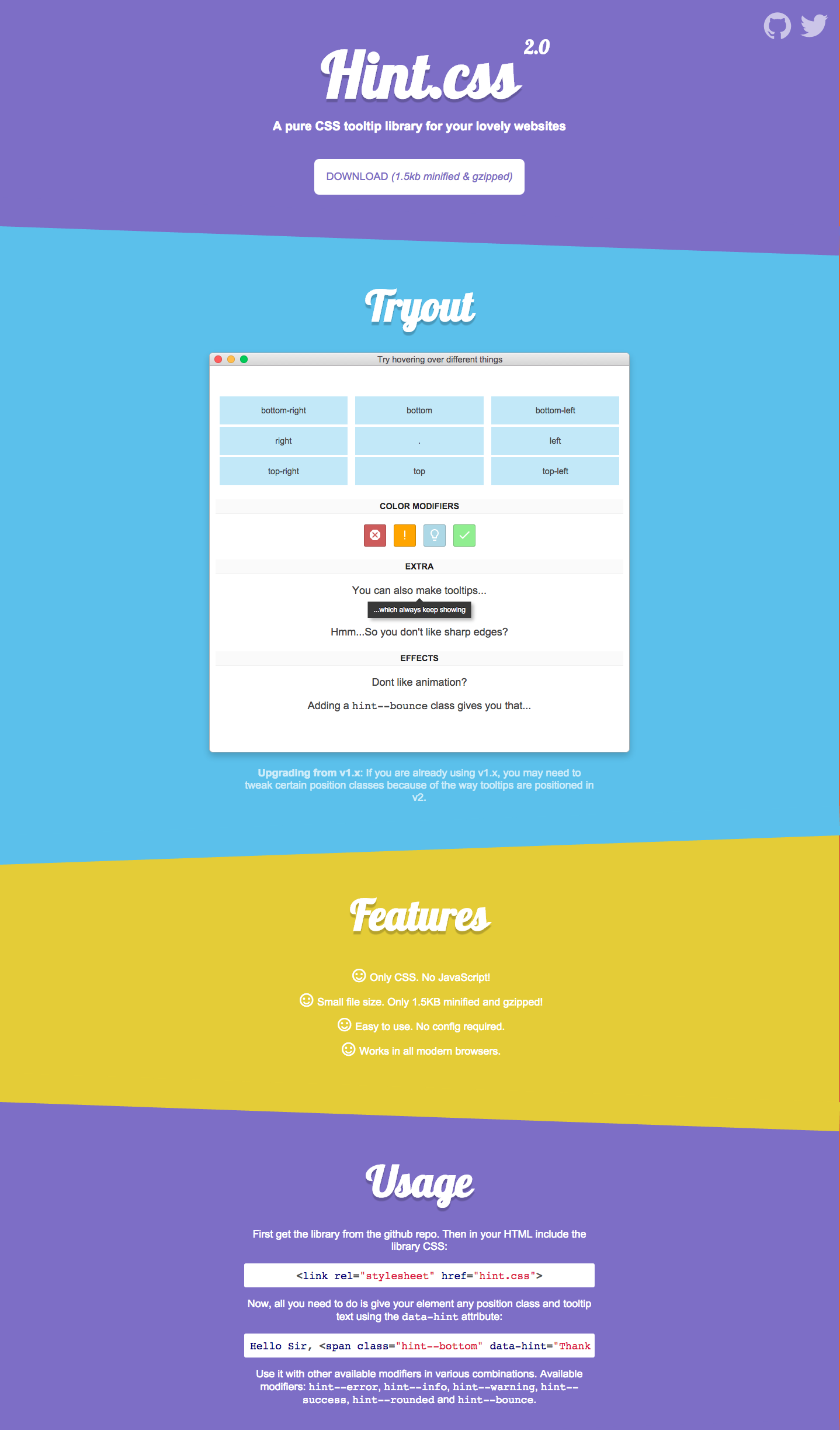 Hint.css is now out with version 2.0! Now you get more control on where your tooltips shows + a shiny new landing page.